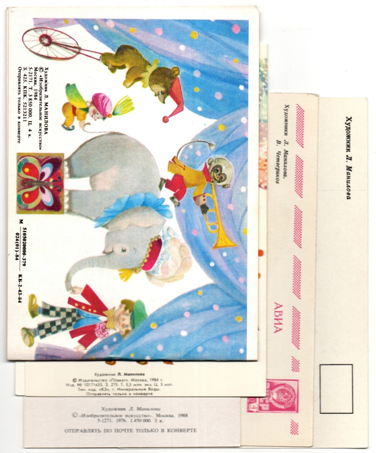 Подборка поздравительных открыток — 5 штук — художник Манилова — чистые, без повторов. 3 открытки обычные, 2 открытки двойные.