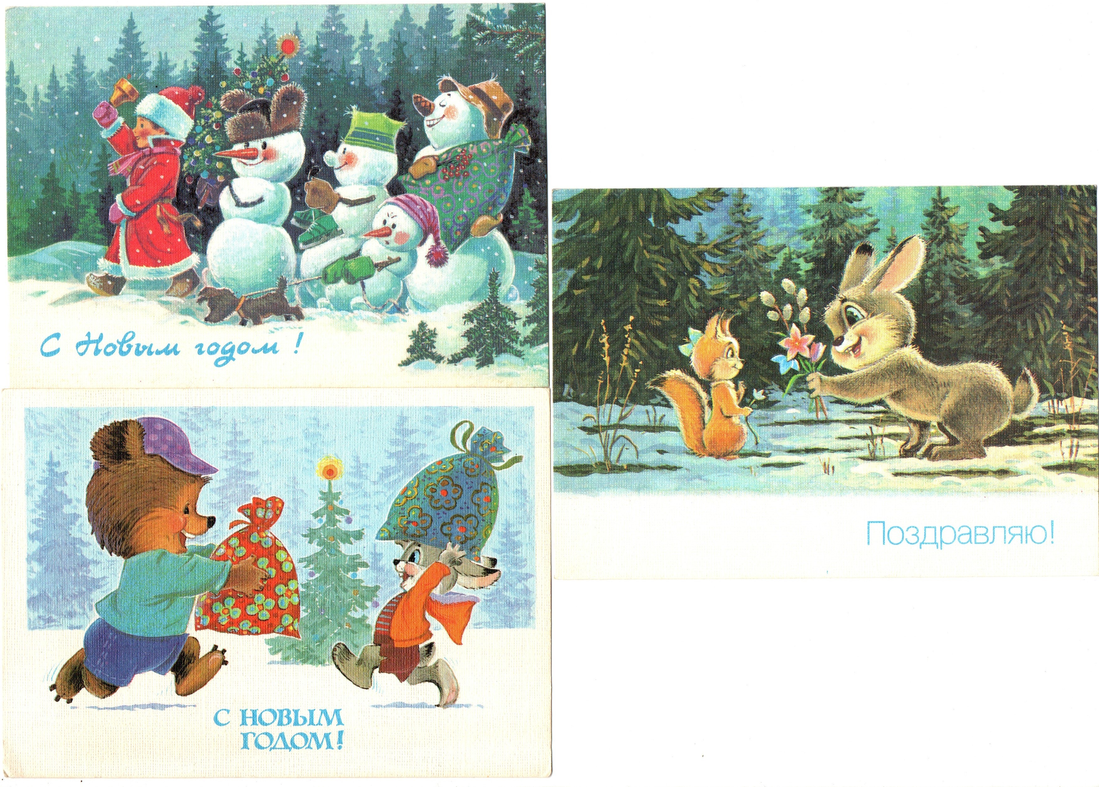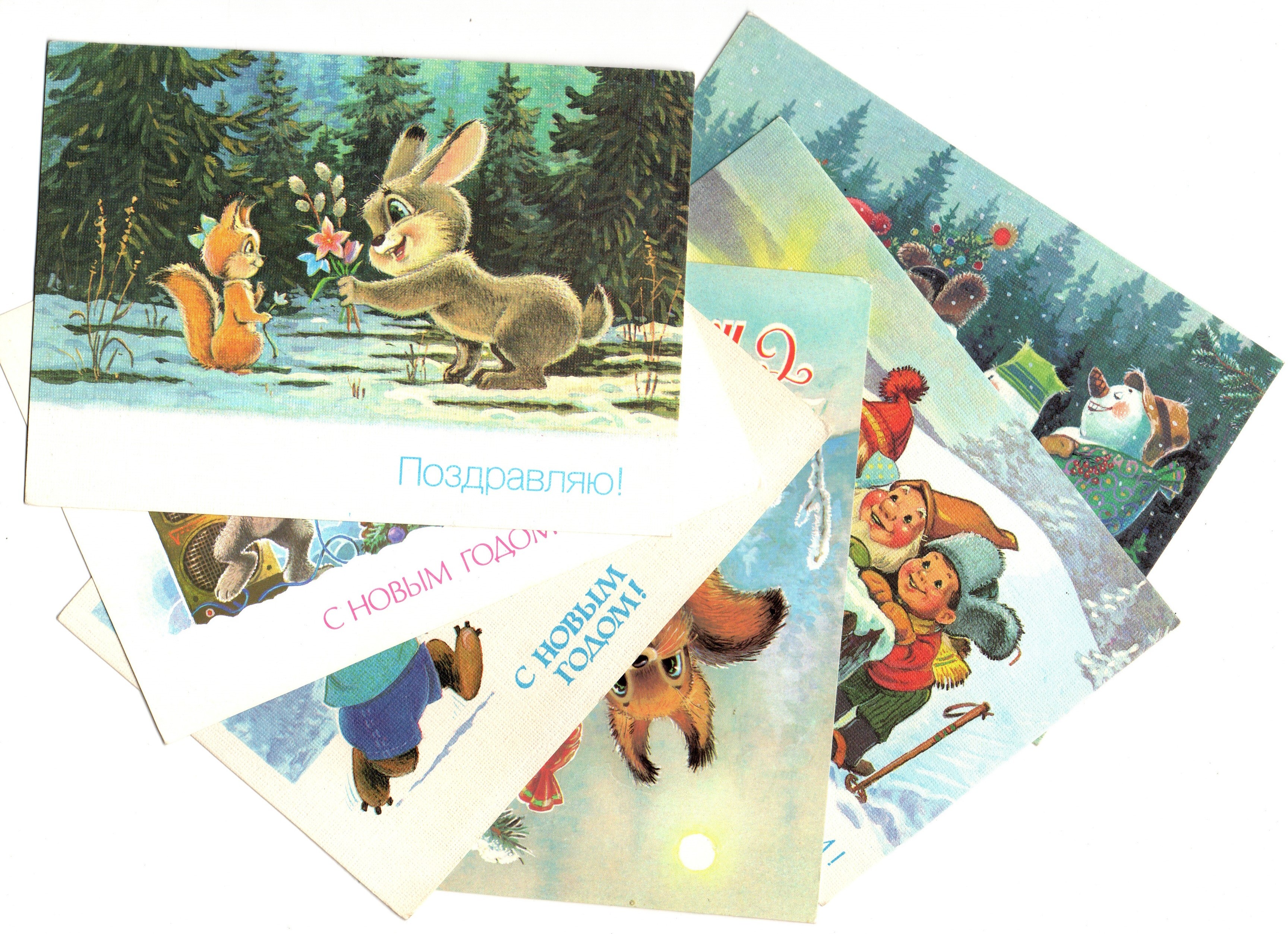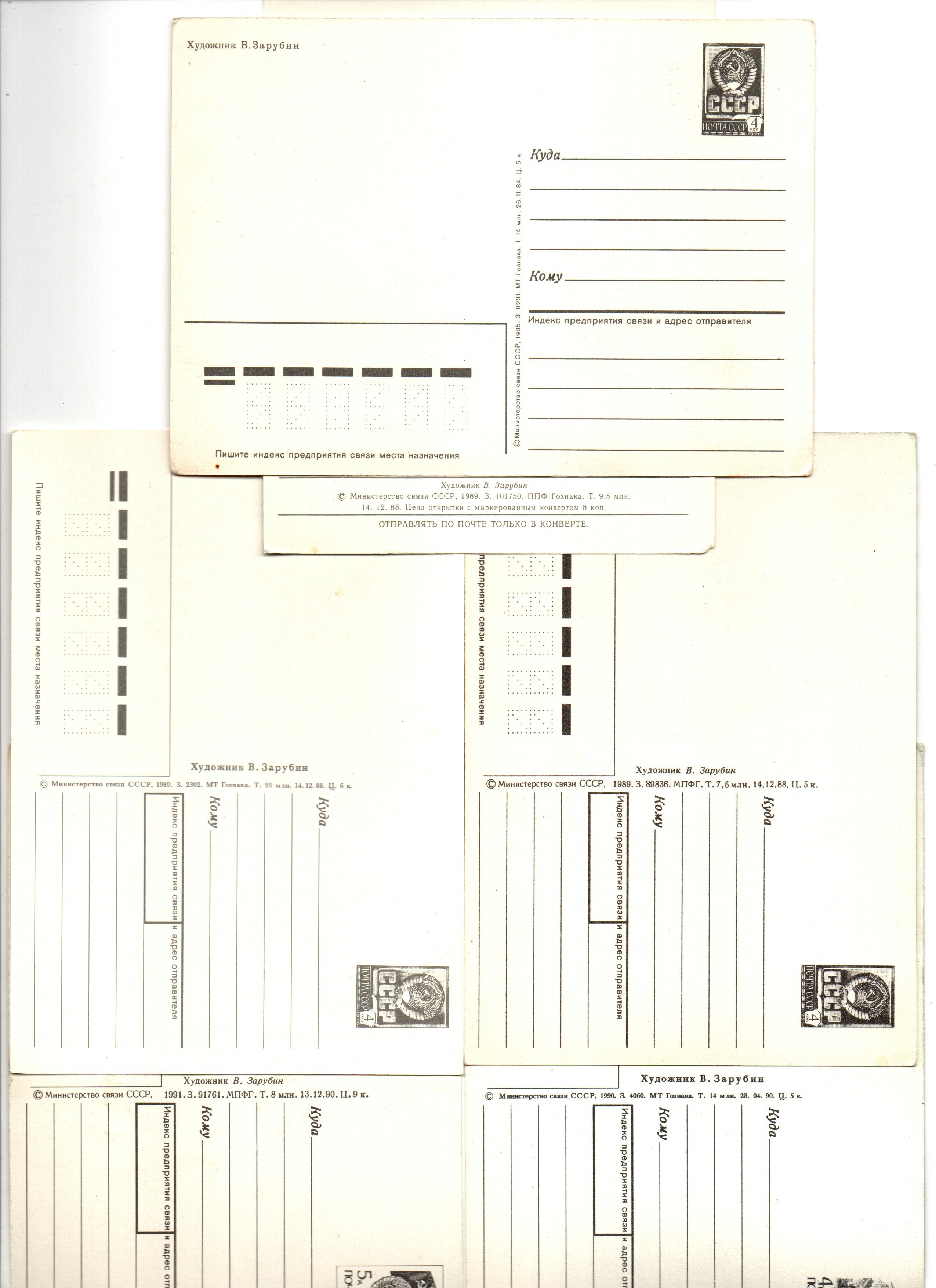 Подборка поздравительных открыток — 6 штук— художник Зарубин — чистые, без повторов