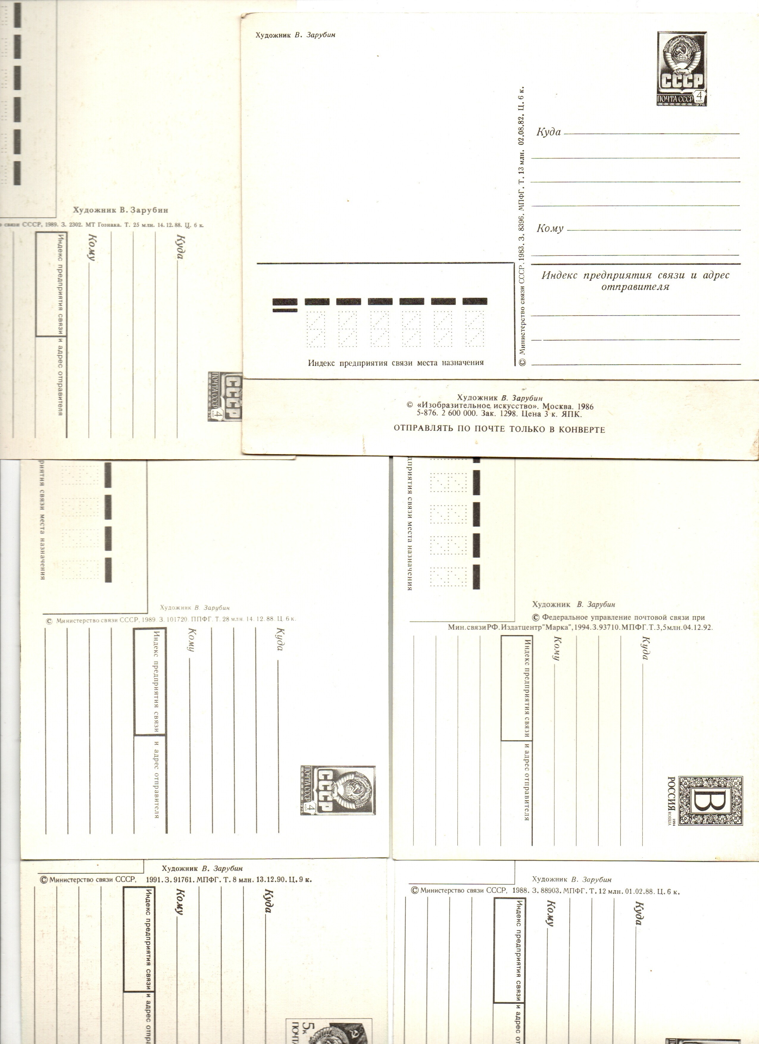 Подборка поздравительных открыток — 7 штук— художник Зарубин — чистые, без повторов