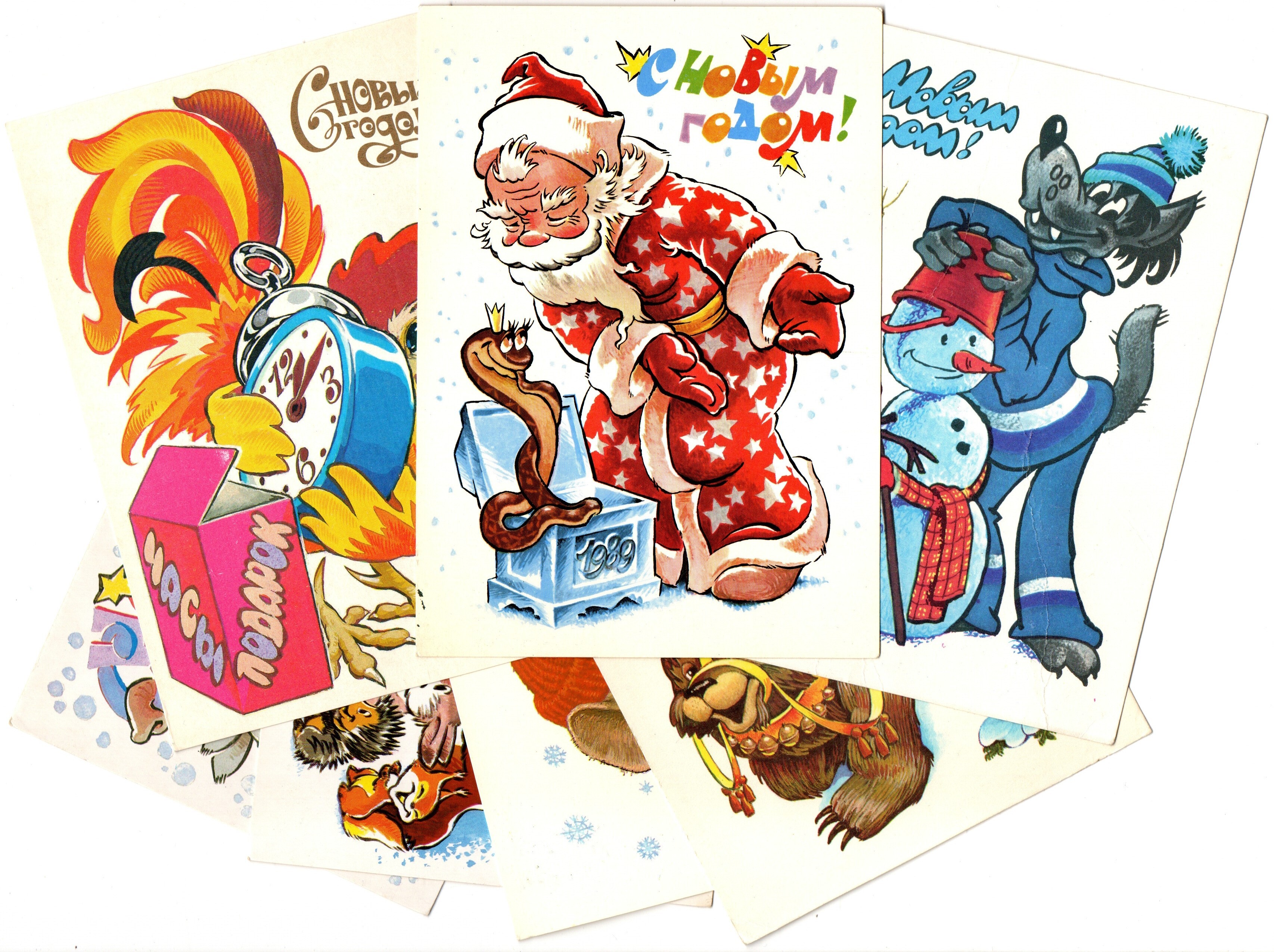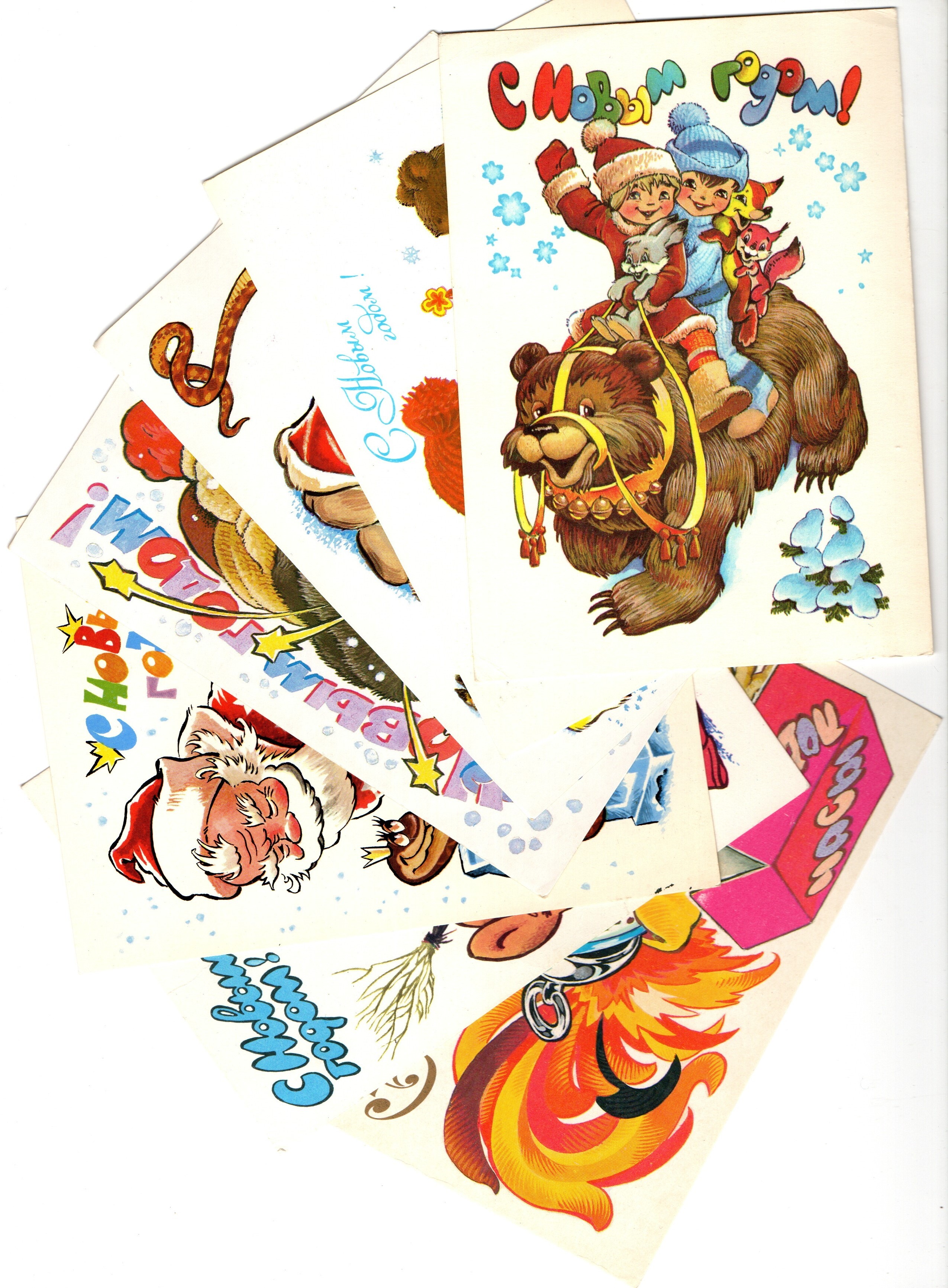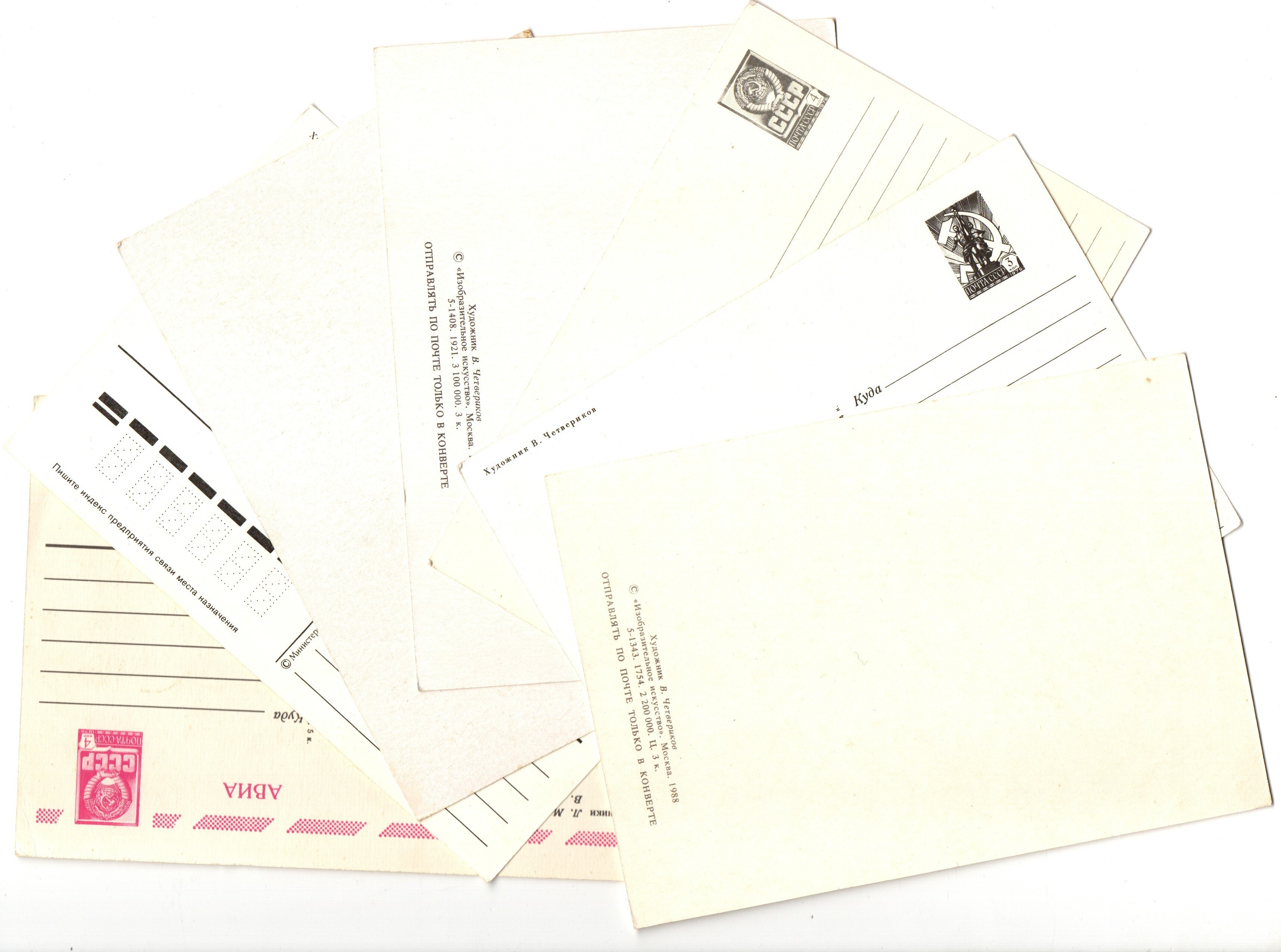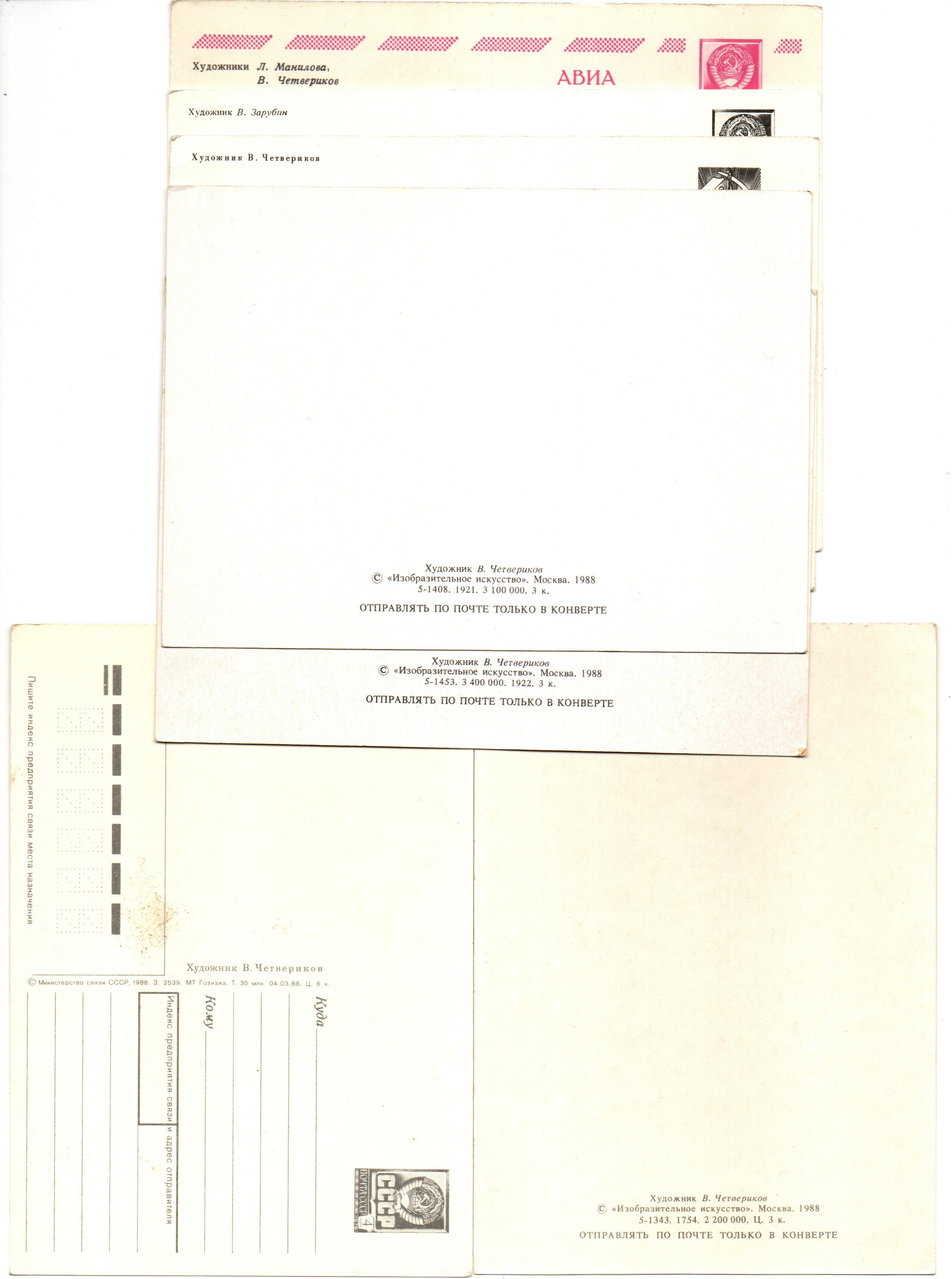 Подборка поздравительных открыток — 7 штук— художники Зарубин, Четвериков — чистые, без повторов