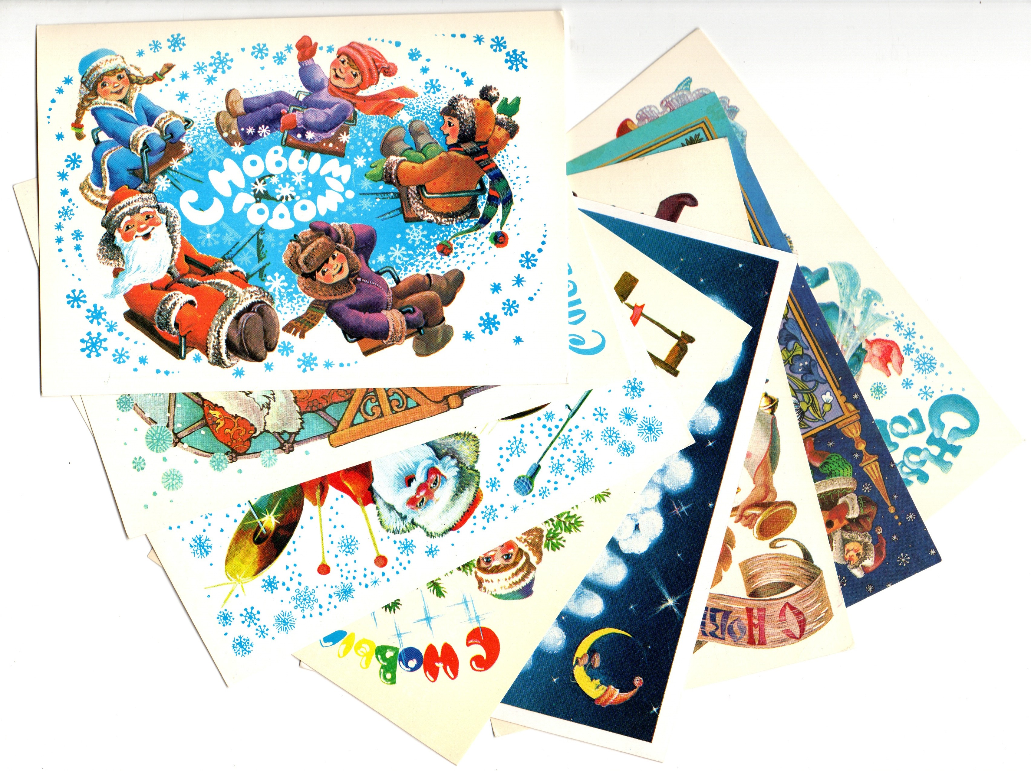 Советские открытки С Новым годом отлично подойдут в личную коллекцию и на подарок коллекционерам открыток.