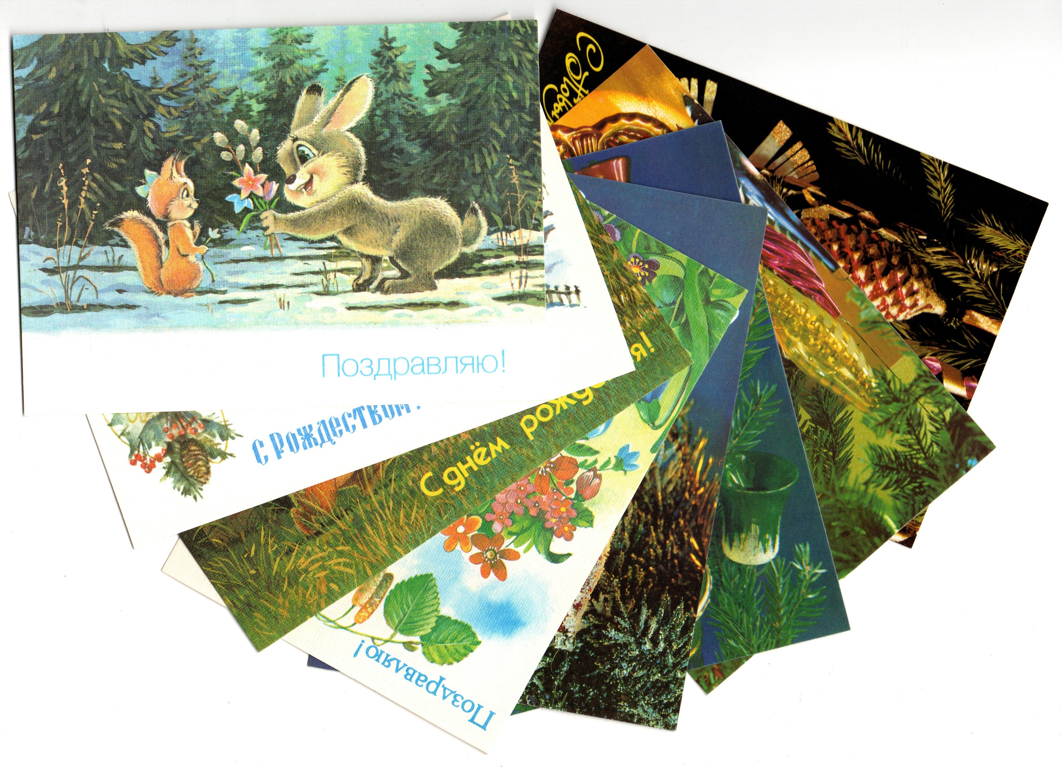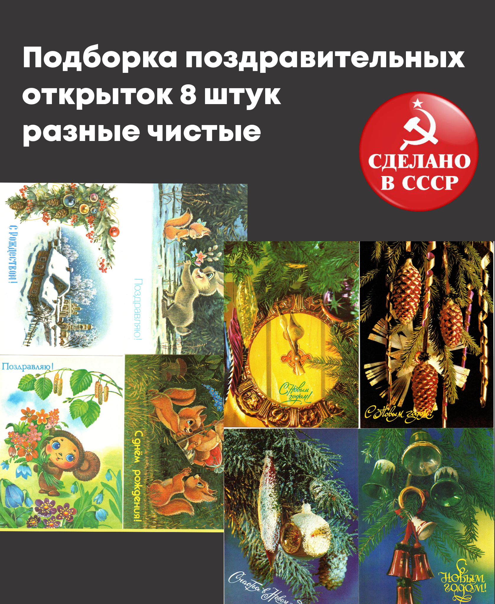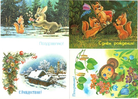 Подборка винтажных поздравительных открыток — 8 штук
