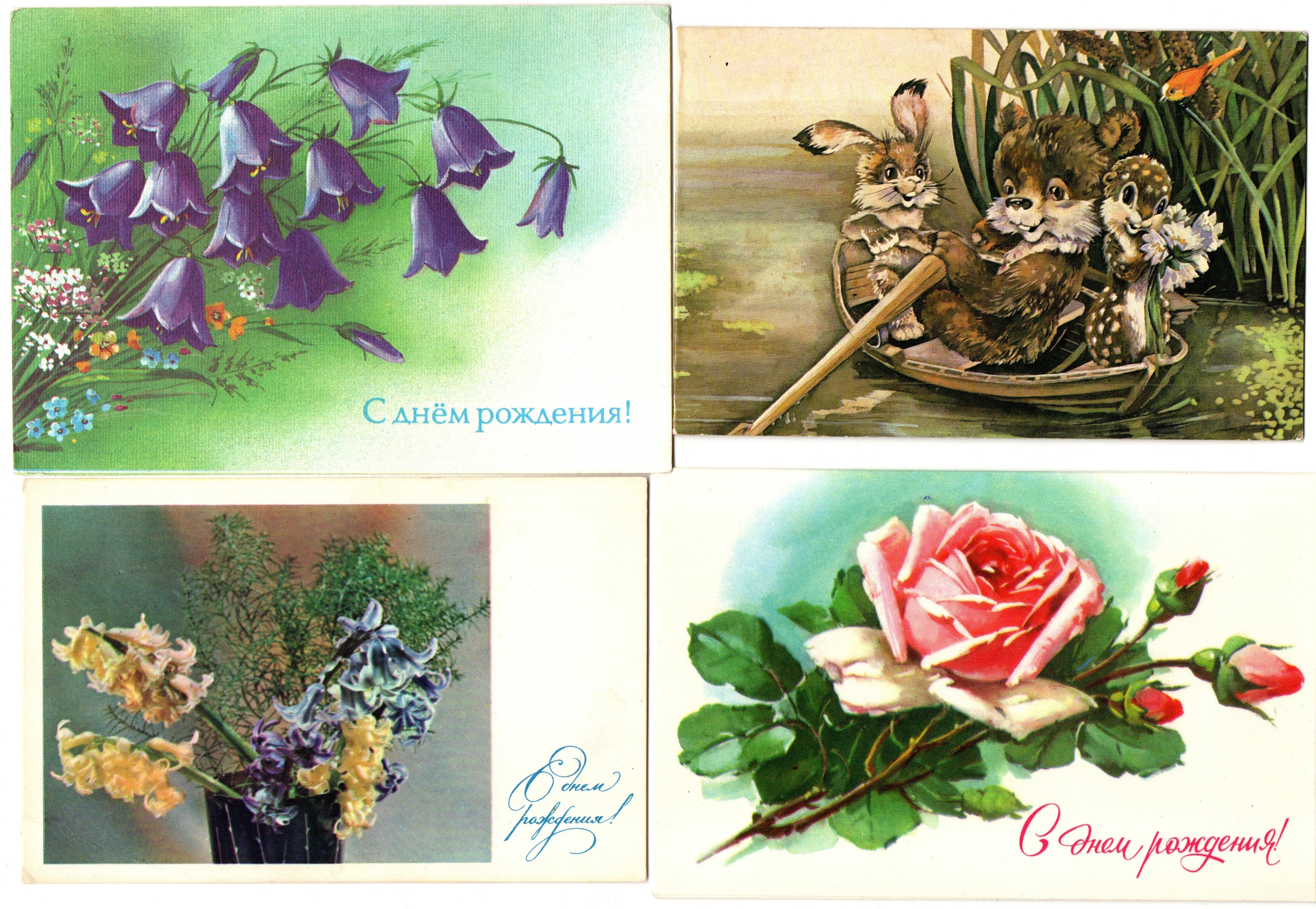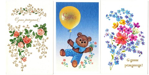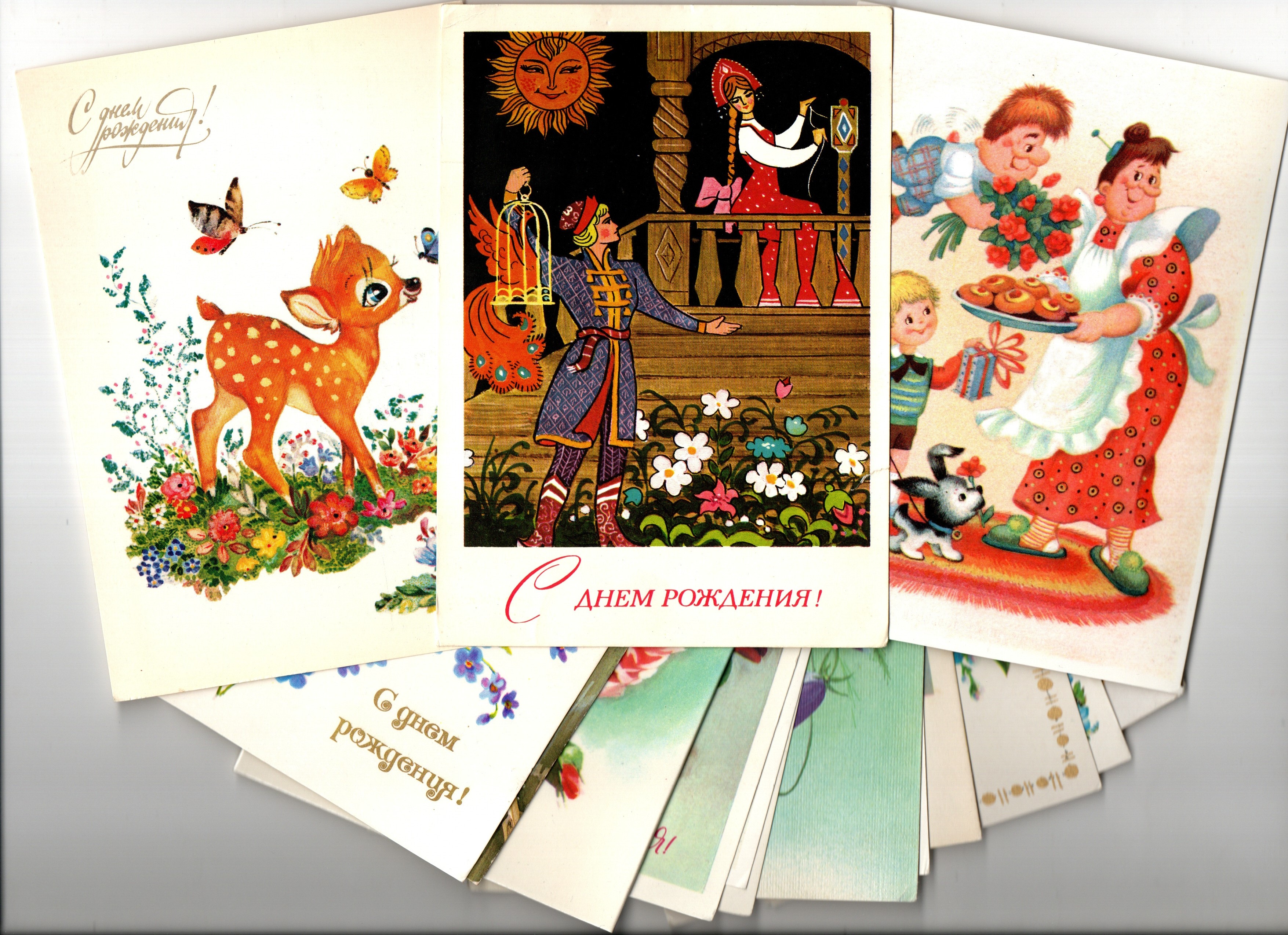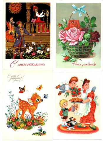 Подборка поздравительных открыток - С днем рождения - 15 штук — разные художники — чистые, без повторов - СССР