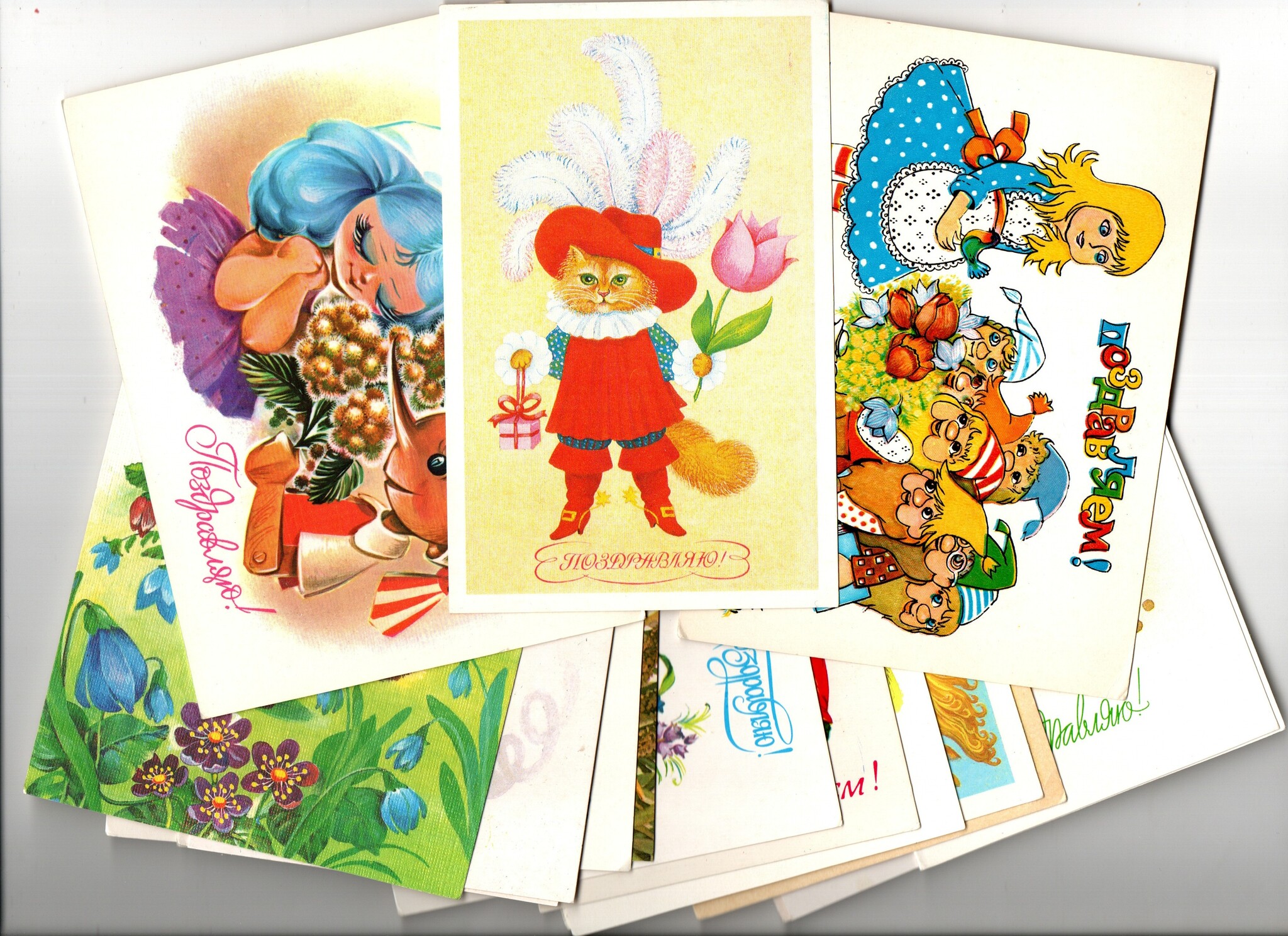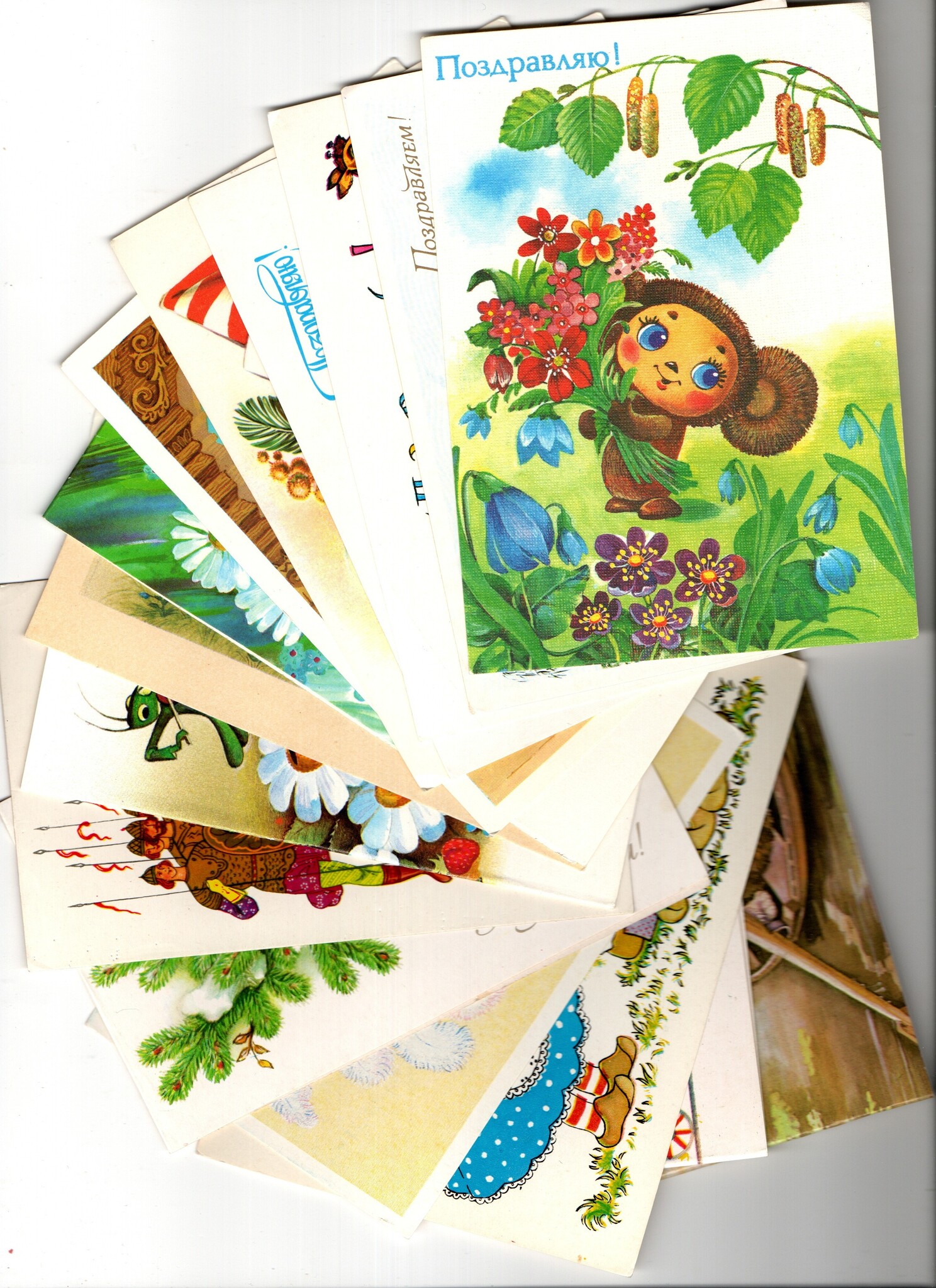Подборка поздравительных открыток СССР — 15 штук — разные художники — чистые, без повторов