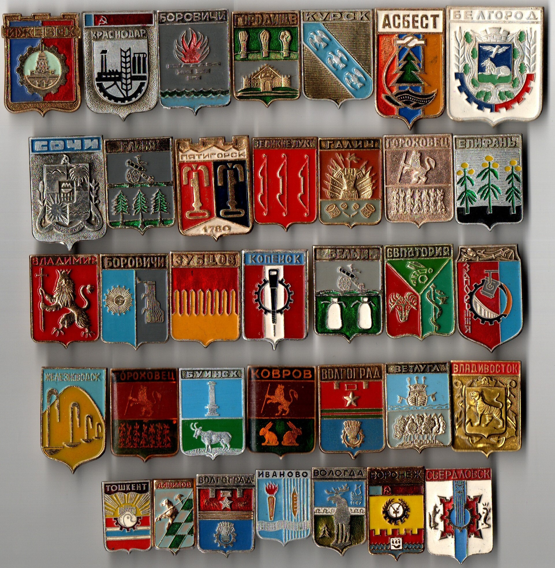 Подборка значков - 35 штук - Тема гербы городов СССР