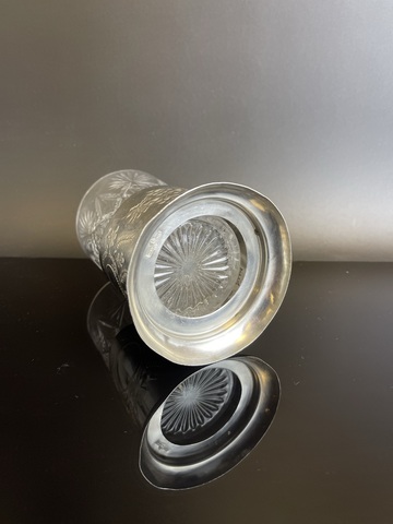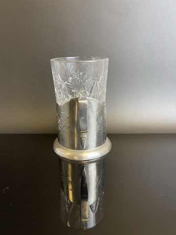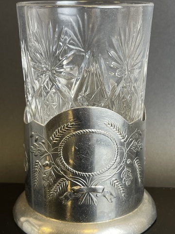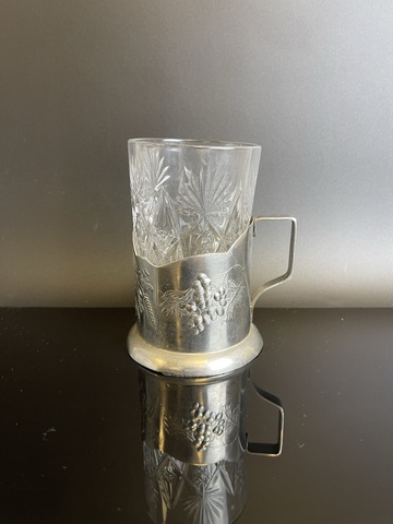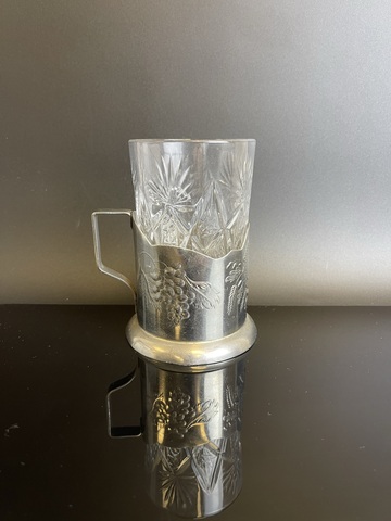Подстаканник алюминиевый с хрустальным стаканом, с узором, винтаж 1960-1990 гг. Присутствуют следы использования - состояние на фото