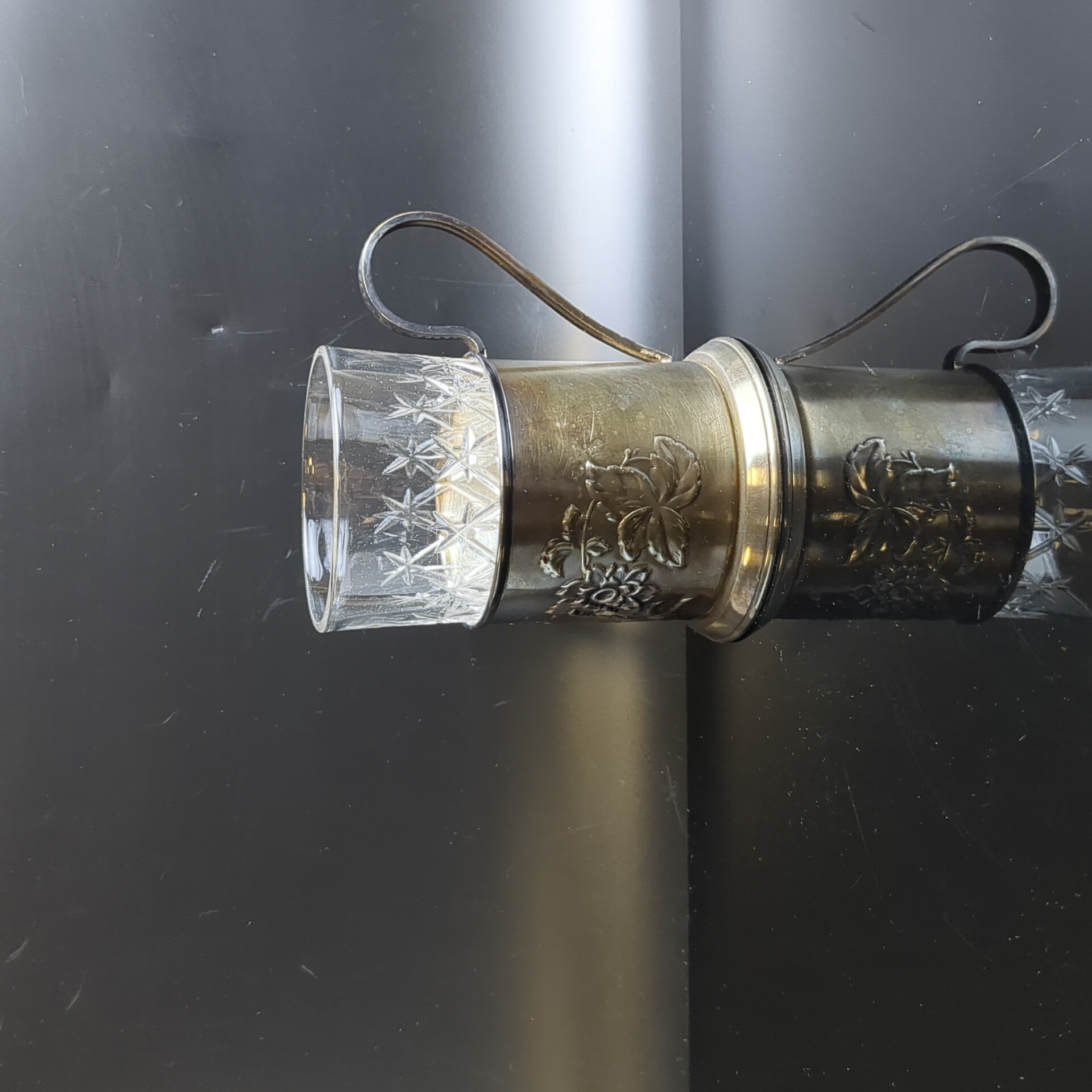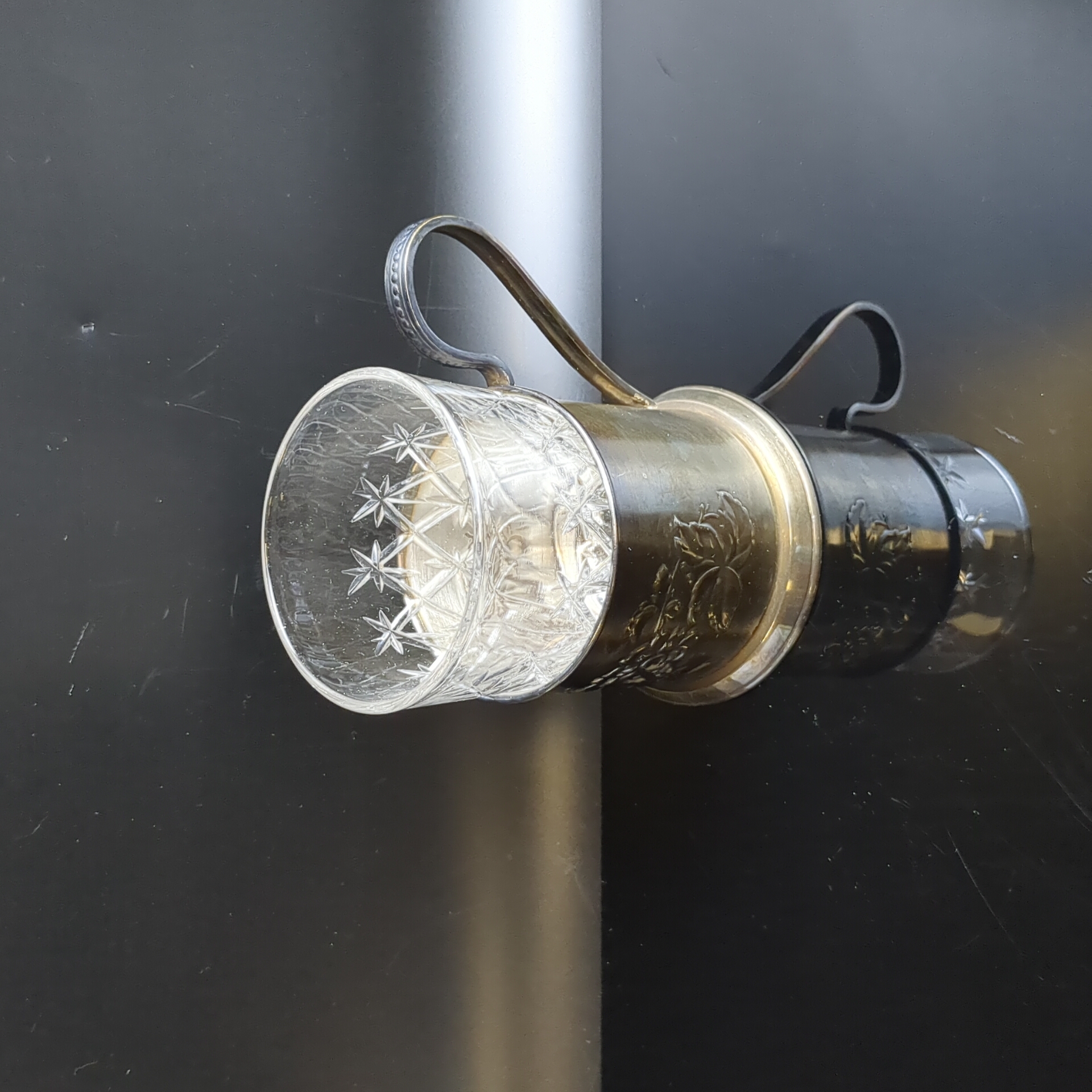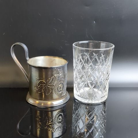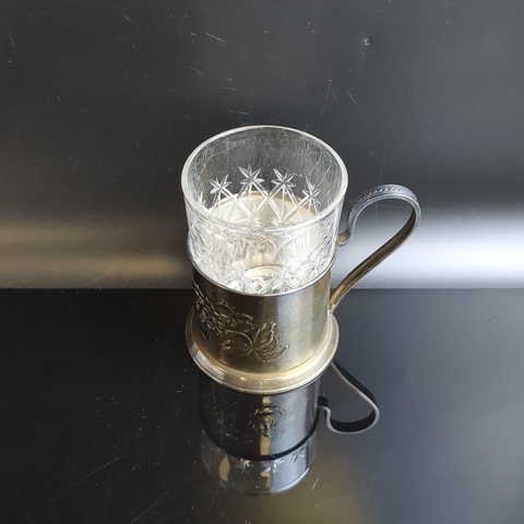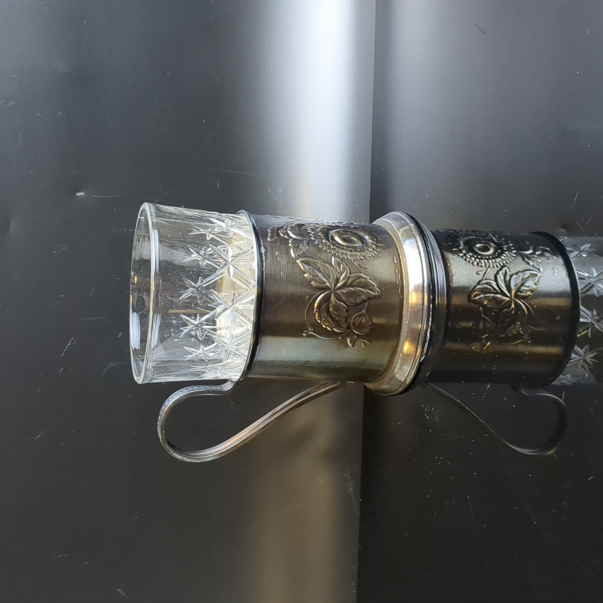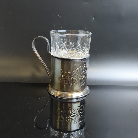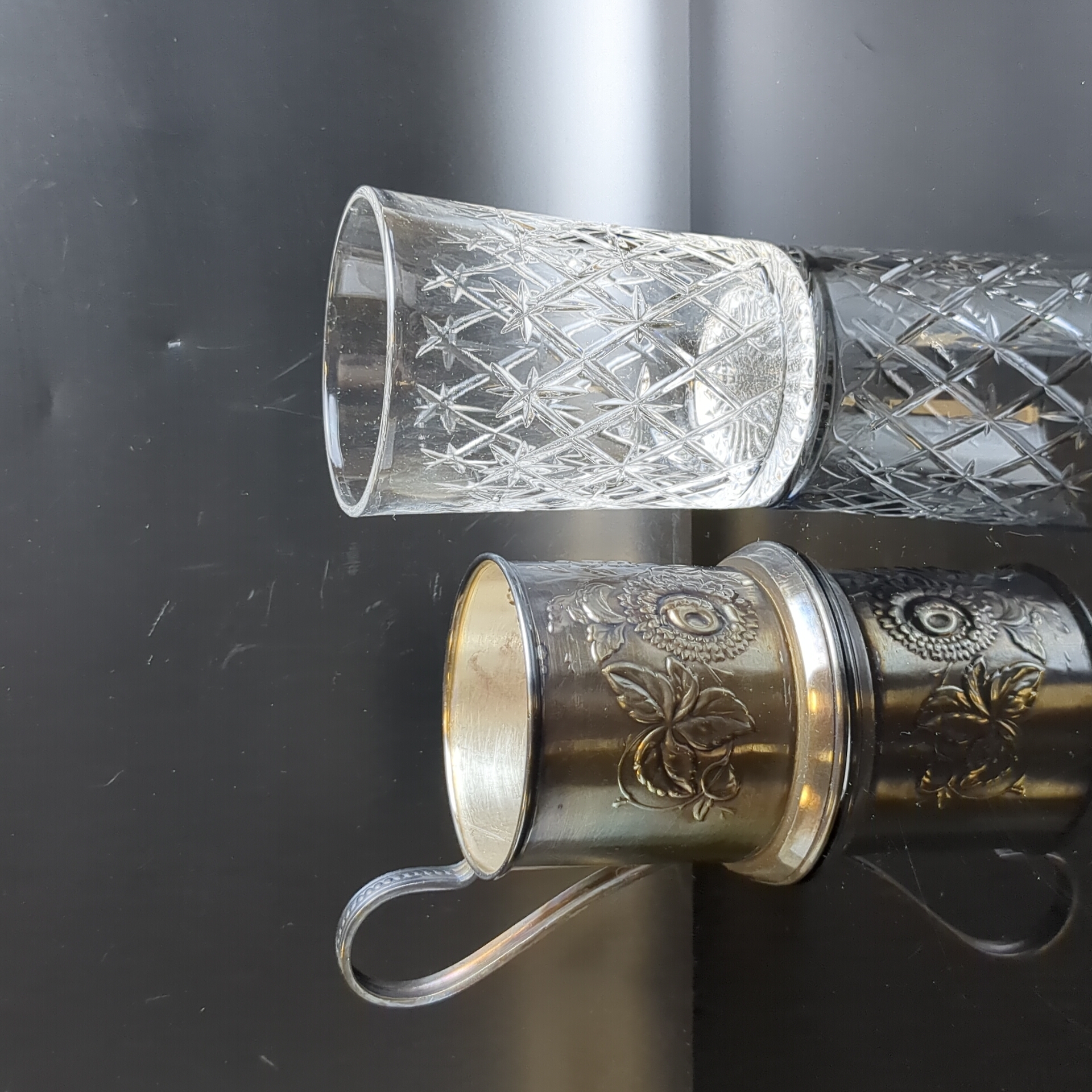 Подстаканник "Астры крупные" с хрустальным стаканом, мельхиор, Мстерская художественная фабрика "Ювелир", СССР, 1960-1970 гг