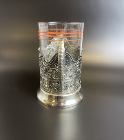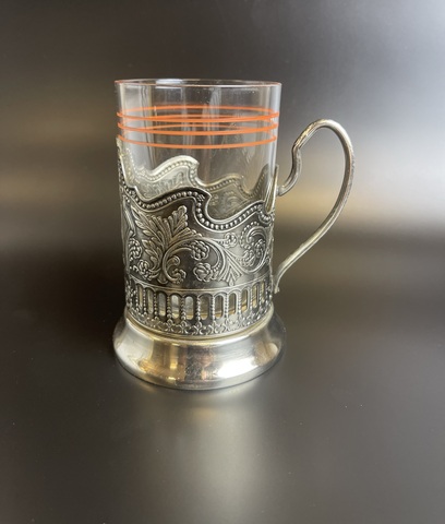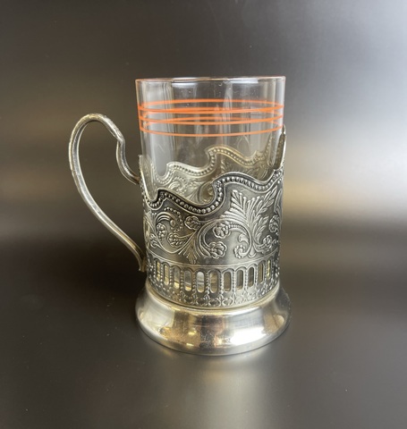 Подстаканник Кама Кольчугино Россия со стеклянным стаканом. Высота - 10.5 см, Состояние на фото