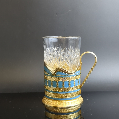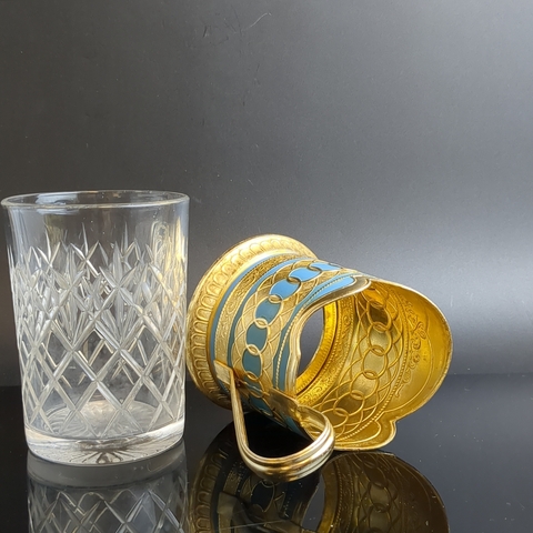 Подстаканник "Кольца" с хрустальным стаканом, алюминий, холодная эмаль, Казаковский завод художественных изделий (КХИ), СССР, 1960-1970 гг.