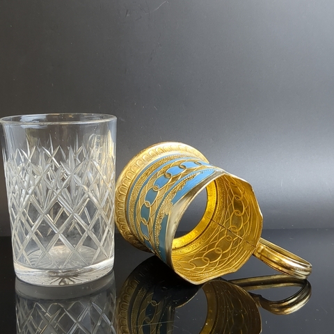 Подстаканник Кольца с хрустальным стаканом, алюминий, холодная эмаль, Казаковский завод художественных изделий (КХИ), СССР, 1960-1970 гг.