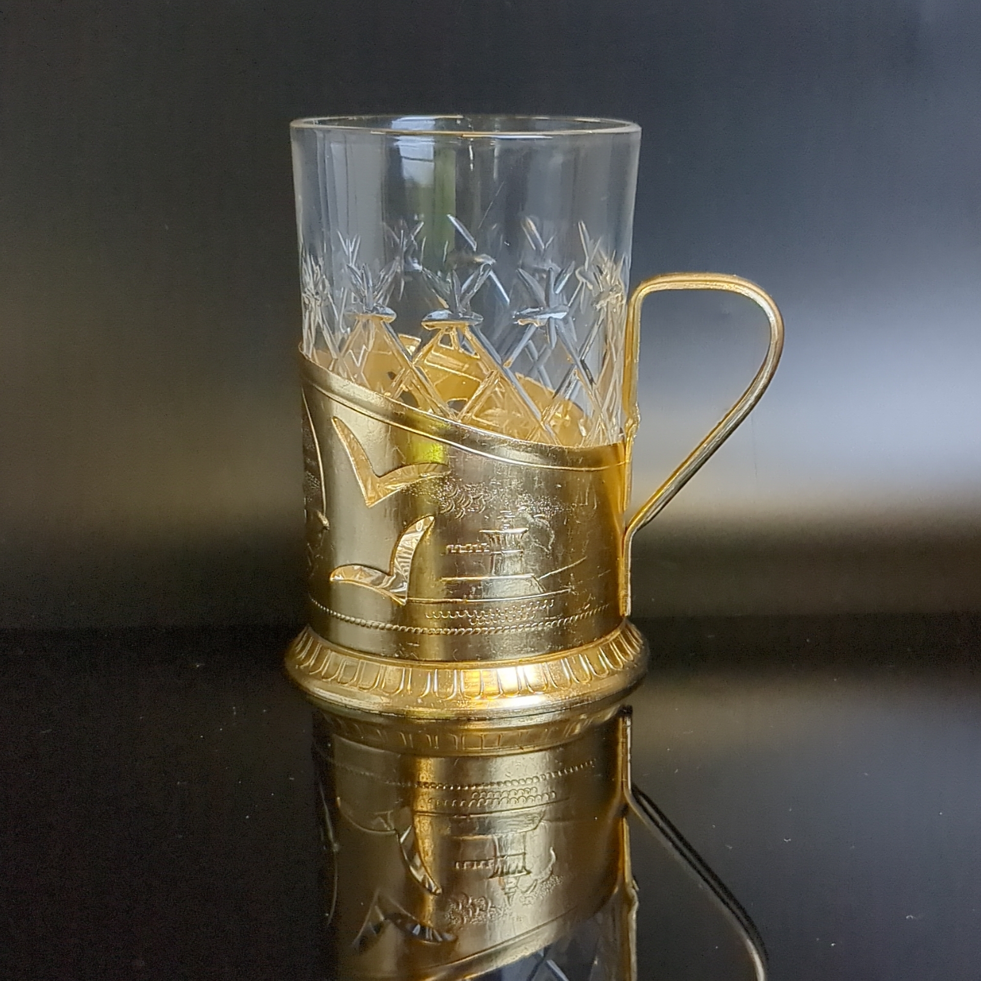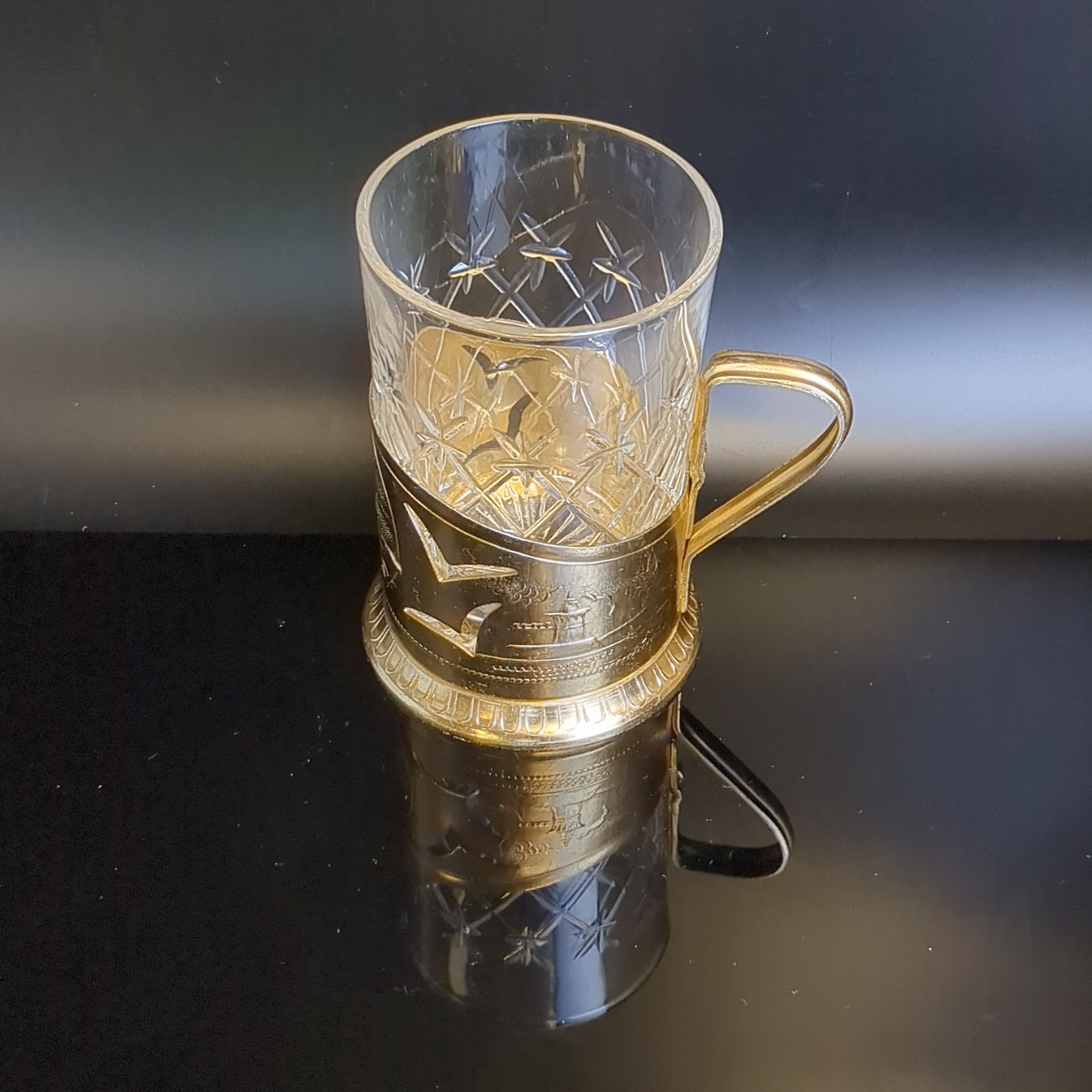 Подстаканник "Ракета" с хрустальным стаканом, Горький, алюминий, КХИ, винтаж СССР. Состояние на фото
