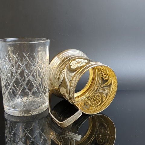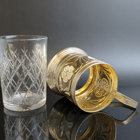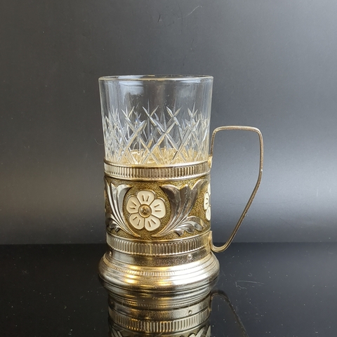 Подстаканник Ромашка с хрустальным стаканом, алюминий, холодная эмаль, СССР