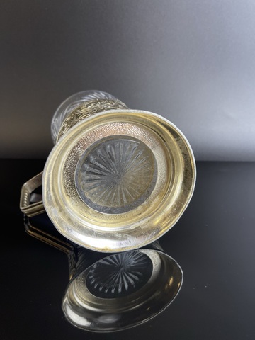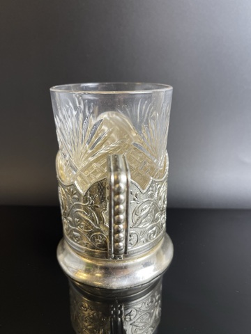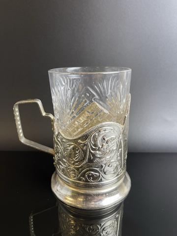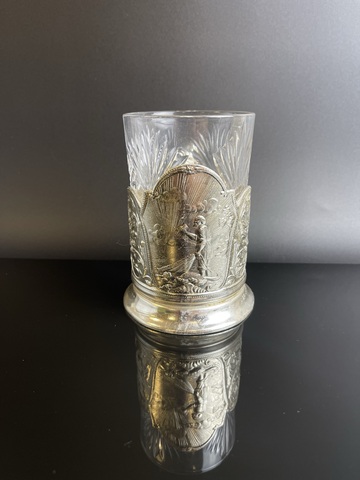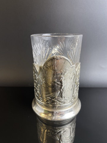 Подстаканник Рыбак Золотая Рыбка сказка. Пушкин. с хрустальным стаканом СССР. Следы использования . Состояние на фото