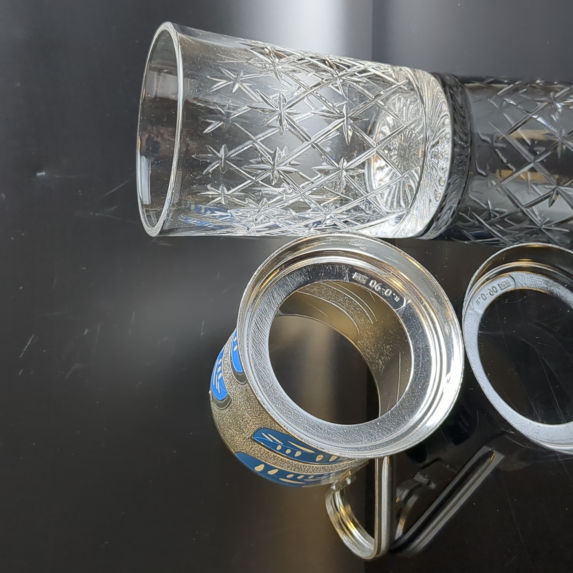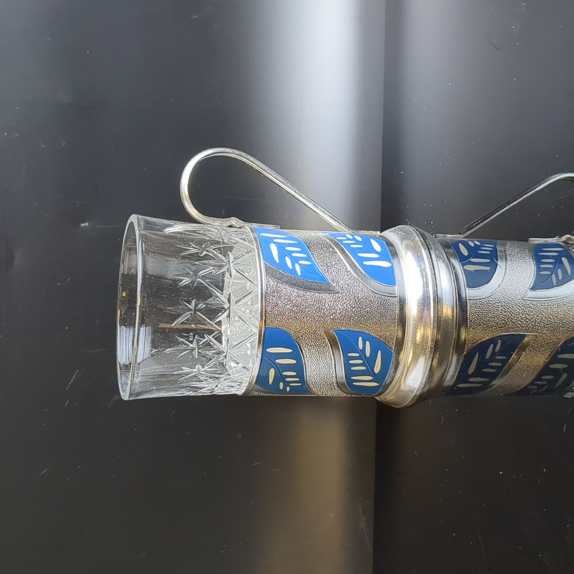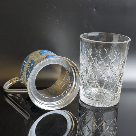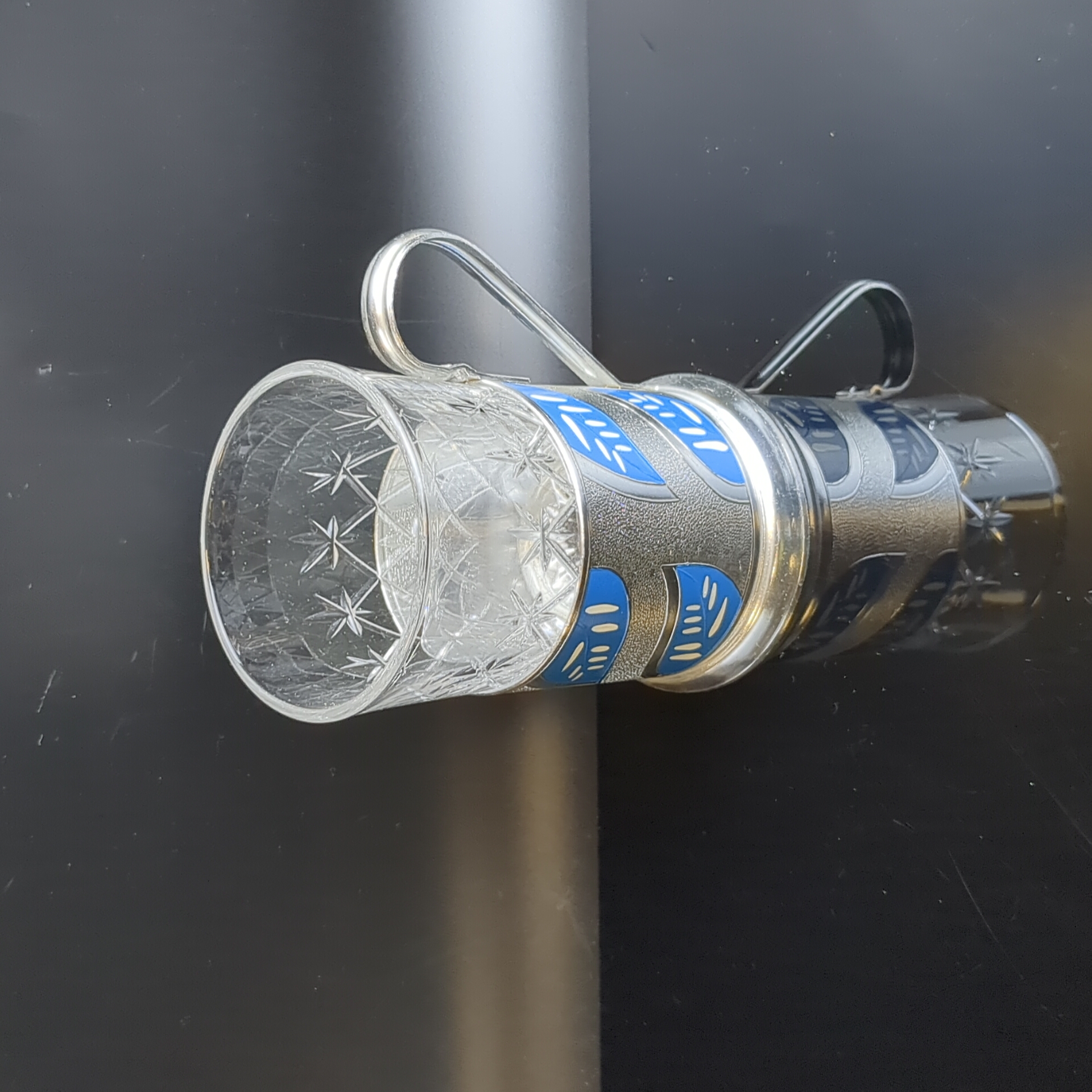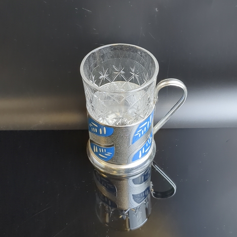 Подстаканник "Синие листья" с хрустальным стаканом, алюминий, роспись, Казаковский завод художественных изделий, СССР, 1960-1970 гг.