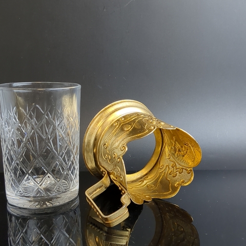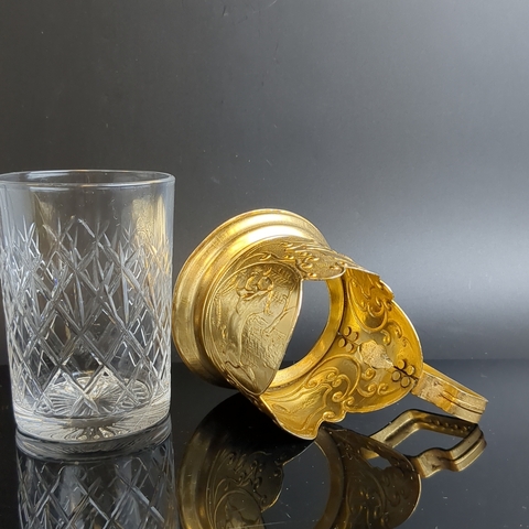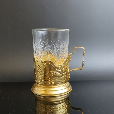 Подстаканник "Соболь", добыча, алюминиевый с хрустальным стаканом, винтаж 1960-1990 гг