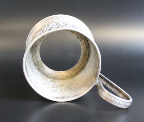 Подстаканник "Ягоды" мельхиор, винтажный СССР 1970-1990 гг. Состояние на фото, выцарапана небольшая надпись "подарочная гравировка" внизу дна