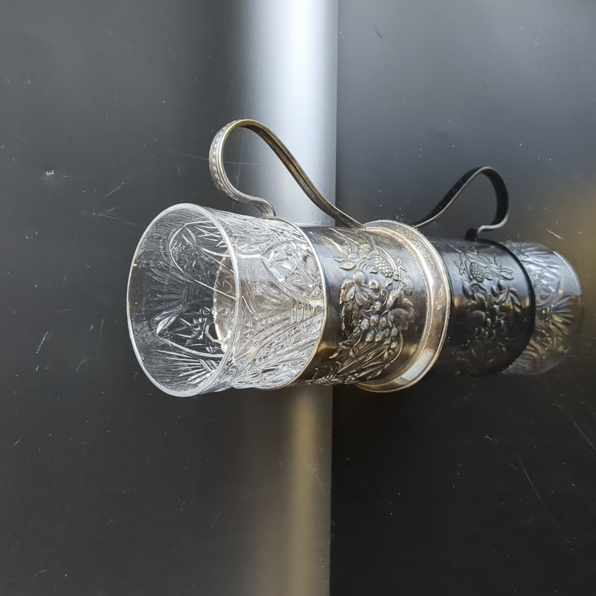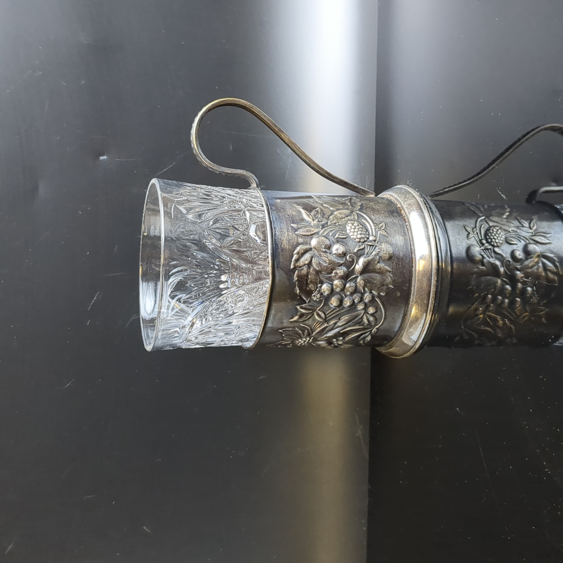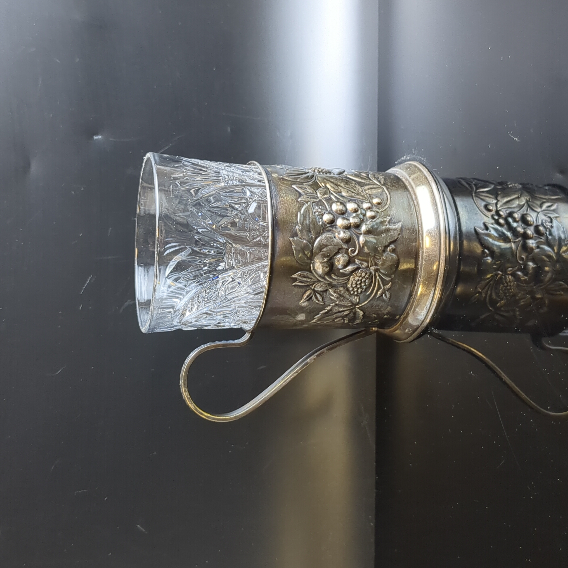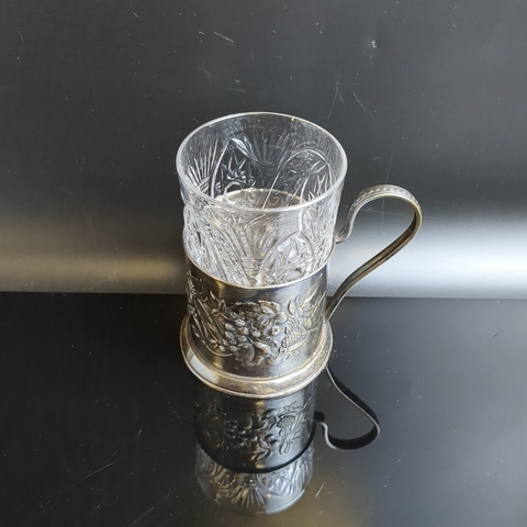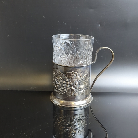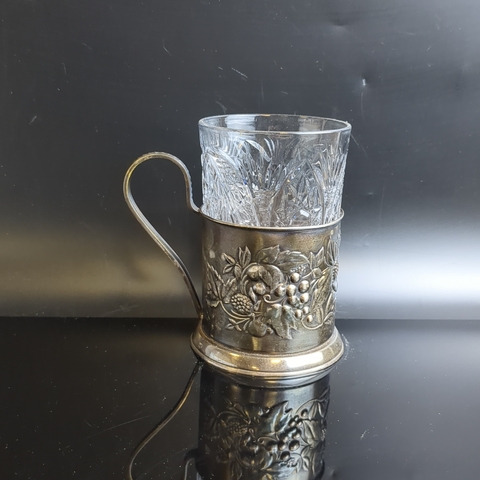 Подстаканник «Ягоды», с хрустальным стаканом, мельхиор (медь-никель), Мстерская художественная фабрика «Ювелир», СССР, 1950-1970 гг.