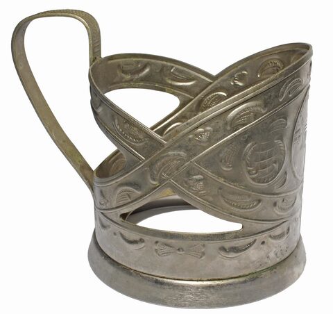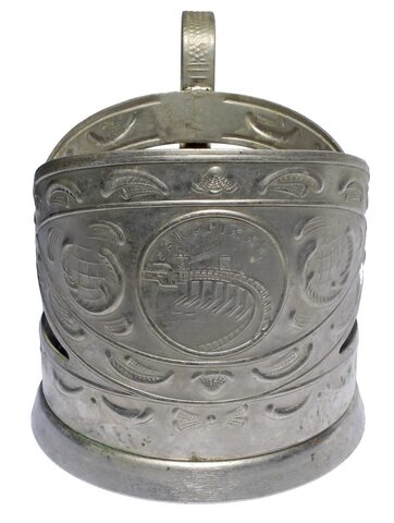 На советском подстаканнике "Запорожье" на лицевой стороне стороне в медальоне изображена плотина ДнепроГЭС.