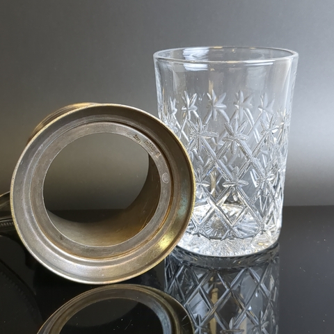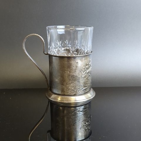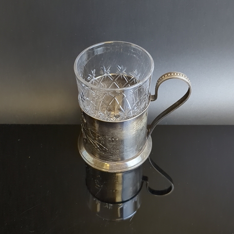 Подстаканник Зимняя тройка с хрустальным стаканом, мельхиор (медь-никель), Артель «Мстерский ювелир» им. В. М. Молотова, СССР, 1949-1952 гг.