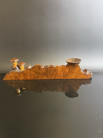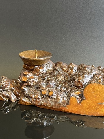 Подсвечник из корня берёзового капа с грибочками. Ручная резьба СССР