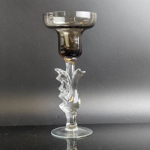 Подсвечник «Птица счастья» цветное дымчатое стекло, ГХЗ, изящный, высота -17.5 см, винтажный 1990х гг. Присутствует следы использования- состояние на фото