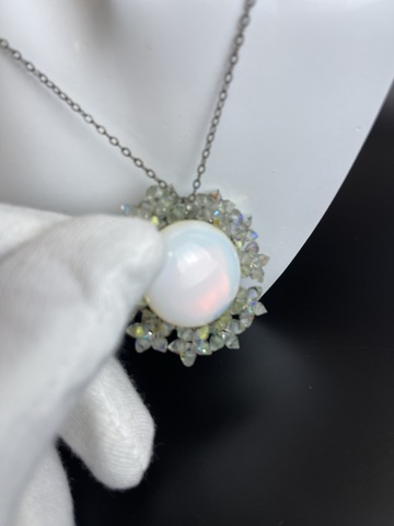 Подвеска с цепочкой винтажная в стиле лунного камня , украшение бисер, бижутерия СССР. Ширина - 4 см. Присутствуют следы использования - чуть потемнение сзади кулона