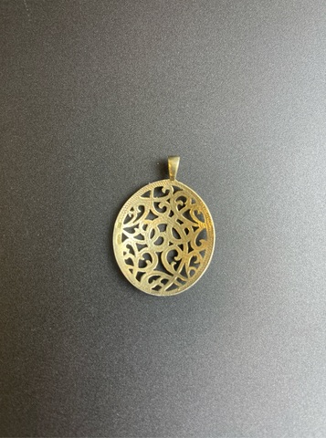 Серебряная, крупная подвеска с абстрактным дизайном. Поверхность украшена хаотичными завитками. Обрамление - минималистичная овальная рамка. Петля для цепочки - каплевидная, широкая. неподвижна.