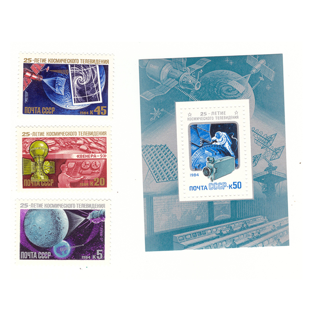 Полная серия марок "25 лет космическому телевидению" (2 маркии почтовый блок)