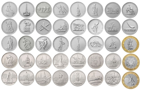 Полный комплект монет 5 и 10 рублей 2014-2016 гг. серии "70 лет Победы в ВОВ"