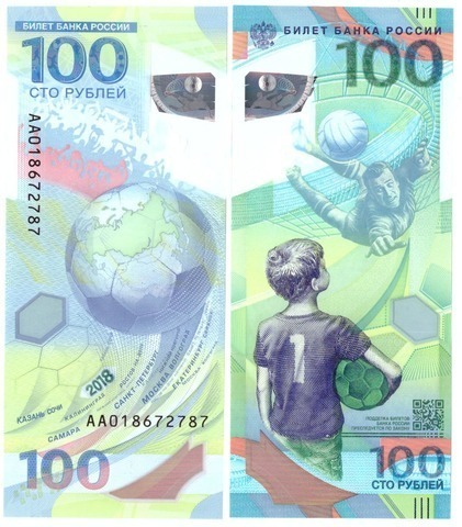 100 рублей банкнота Чемпионат мира по футболу в России 2018