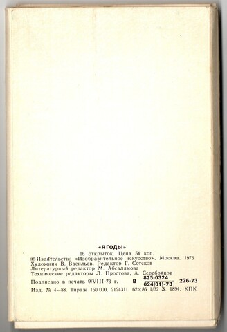 Полный набор 16 открыток "Ягоды" СССР. 1973 год