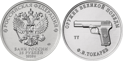 25 рублей 2020 Ф.В. Токарев Ппистолета ТТ)