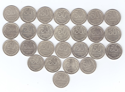 Набор 50 копеечных монет периода с 1961 по 1991 год,без редких.