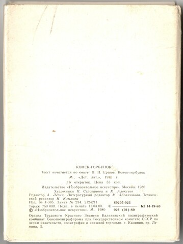 Полный набор из 16 открыток "Конек Горбунок". 1975 г. СССР.