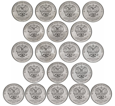 Полный набор из 19 монет 25 рублей Серия: Оружие Великой Победы (конструкторы оружия). 2019-2020 гг. UNC