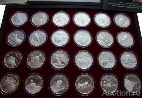 Полный набор из 24 монеты 50 долларов 1989 год. Космос. Маршалловы о-ва. Серебро. В коробке