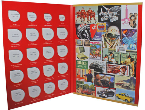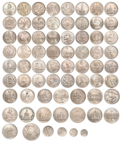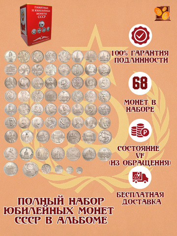 Полный набор из 68 юбилейных монет СССР в альбоме, включая "шайбу" и копейки 50 лет Советской власти