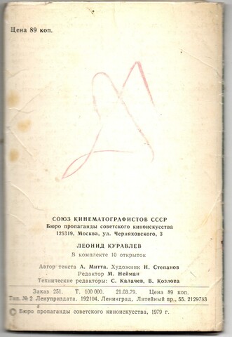 Полный набор открыток 10 штук Леонид Куравлев, полный Актеры Артисты. 1979 год СССР