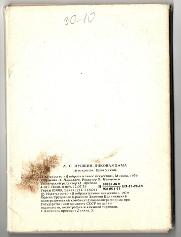 Полный набор цветных открыток 16 штук иллюстраций к повести А.Пушкина Пиковая дама 1979 год СССР