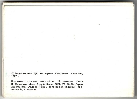 Полный набор открыток 18 штук «г. Алма-Ата». 1987 год СССР