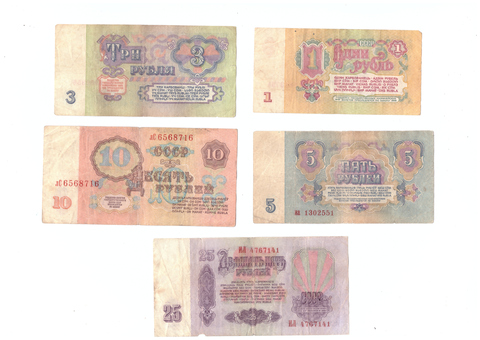 Набор банкнот 1, 3, 5, 10, 25 рублей 1961 год