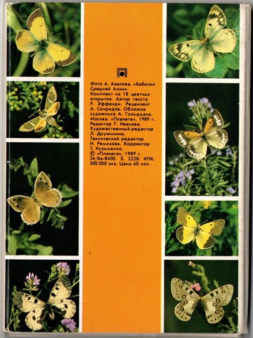 Полный набор цветных открыток "Бабочки Средней Азии" 18 штук 1989 года СССР