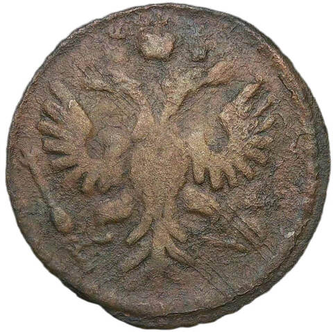 Полушка 1734 год, перечекан из крестовой копейки Петра I (F)