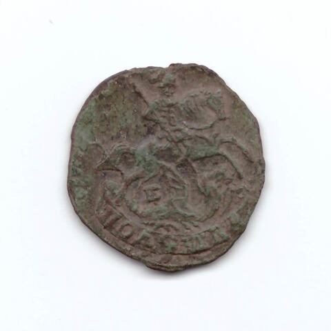 Аверс: В центре - вензель Екатерины II. Над ним императорская корона. Под вензелем обозначение Сузунского монетного двора - буквы «К М». Вокруг центрального изображения, вдоль канта, изображён венок из лавровой и пальмовой ветвей, которые, в нижней части, перевязаны лентой на узел бантом.