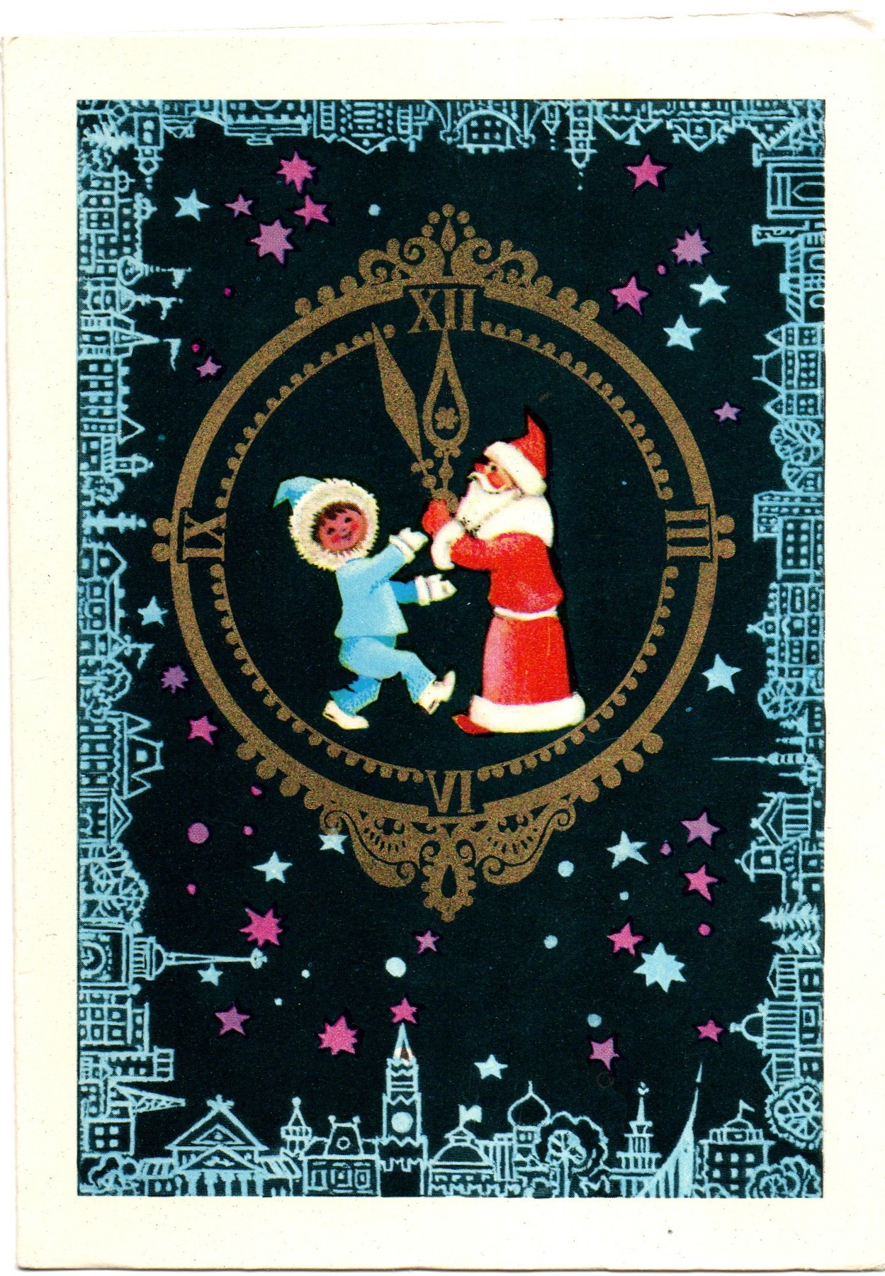 Поздравительная двойная Новогодняя открытка художник Л. Манилова сюжет новогодний, чистая, малотиражная, 1974 год винтаж времен СССР. Состояние на фото