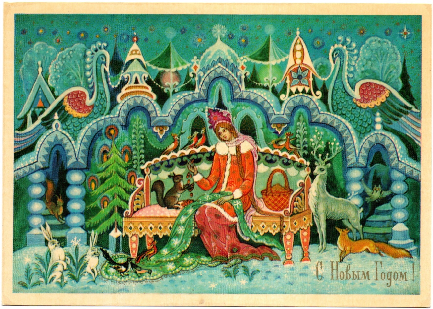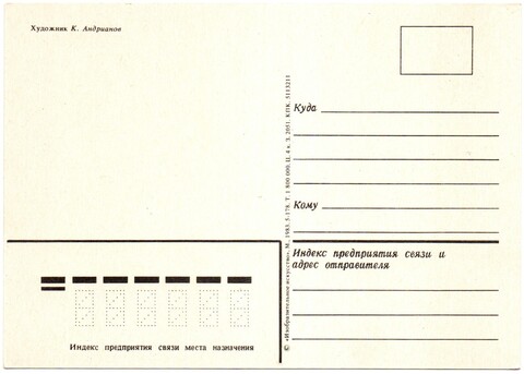 Поздравительная открытка художник К. Андрианов, палех изображение, винтаж СССР 1983 год