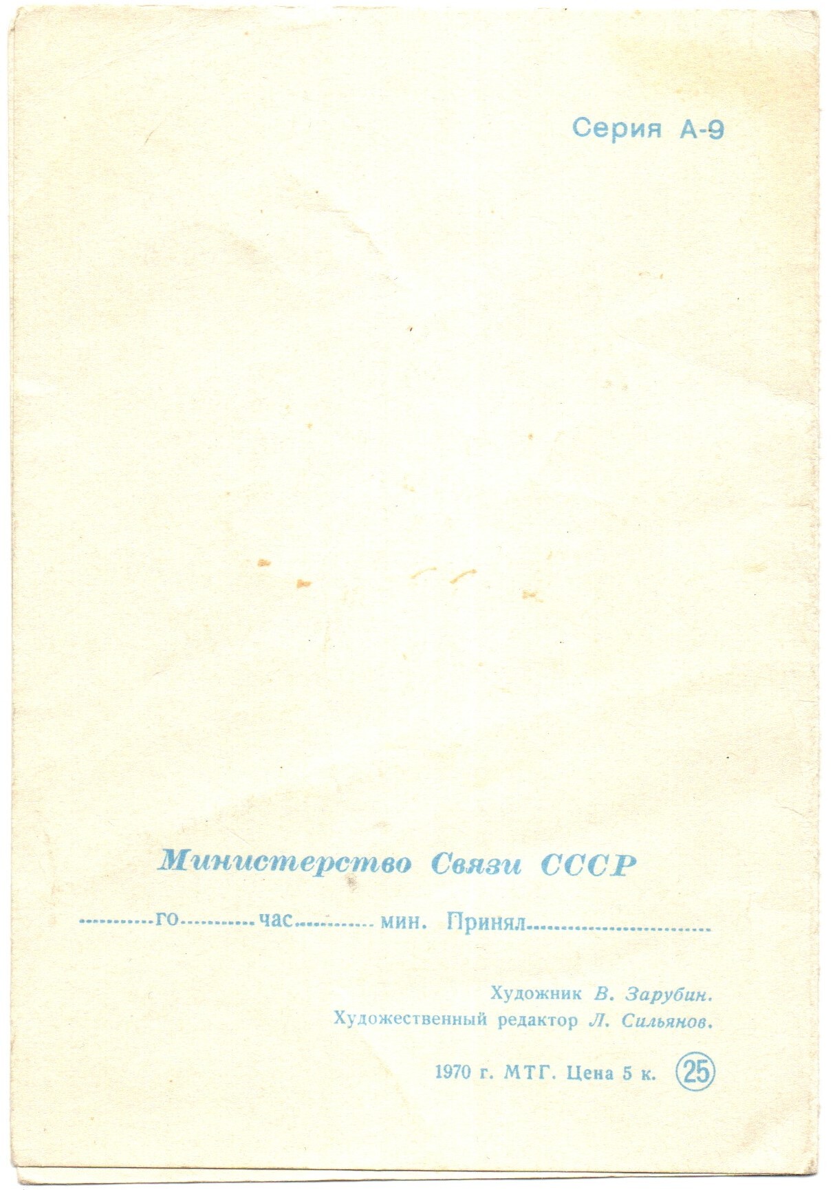 Поздравительная открытка, телеграмма художник Зарубин 1970 год винтаж СССР. Состояние на фото
