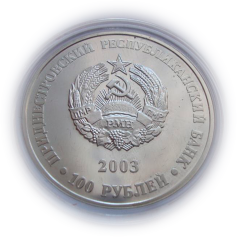 Приднестровье 100 рублей 2003 Удод обыкновенный Животный мир СЕРЕБРО тираж 500 шт