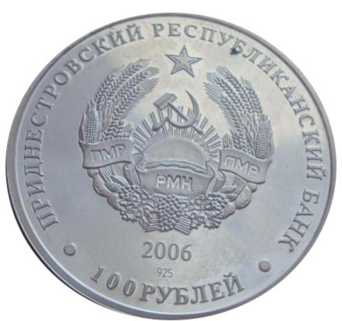 Приднестровье 100 рублей 2006 Бендерская крепость СЕРЕБРО тираж 500 шт