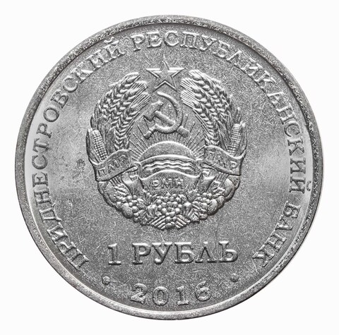 Аверс: в центре – изображение Государственного герба Приднестровской Молдавской Республики; по кругу – надписи: вверху – «ПРИДНЕСТРОВСКИЙ РЕСПУБЛИКАНСКИЙ БАНК», внизу – год выпуска монеты «2016»; в нижней части под гербом – номинал «1 РУБЛЬ».